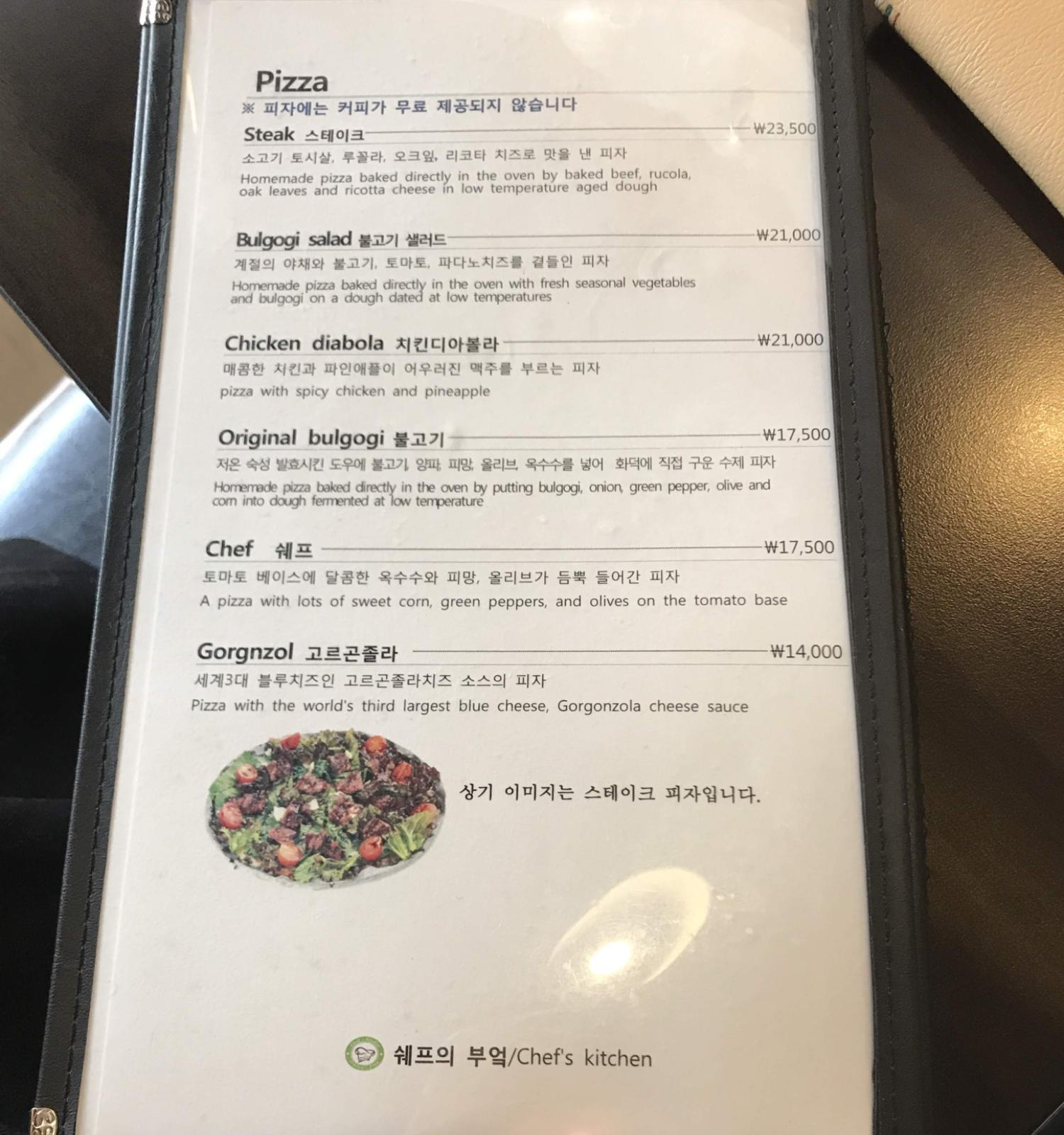 셰프의 부엌이라는 곳인데, 꽤 맛있는 피자와 파스타를 먹을 수 있다.