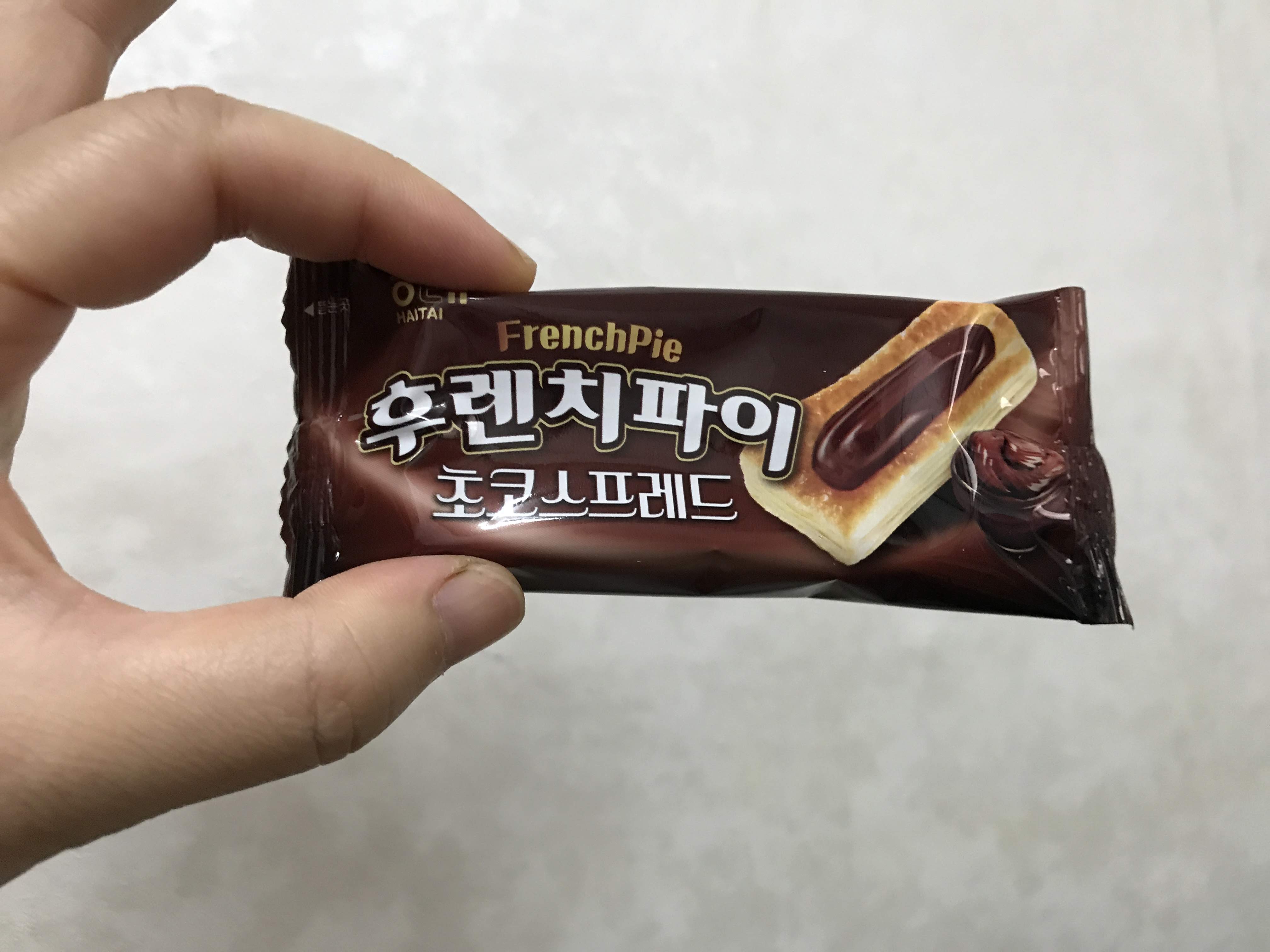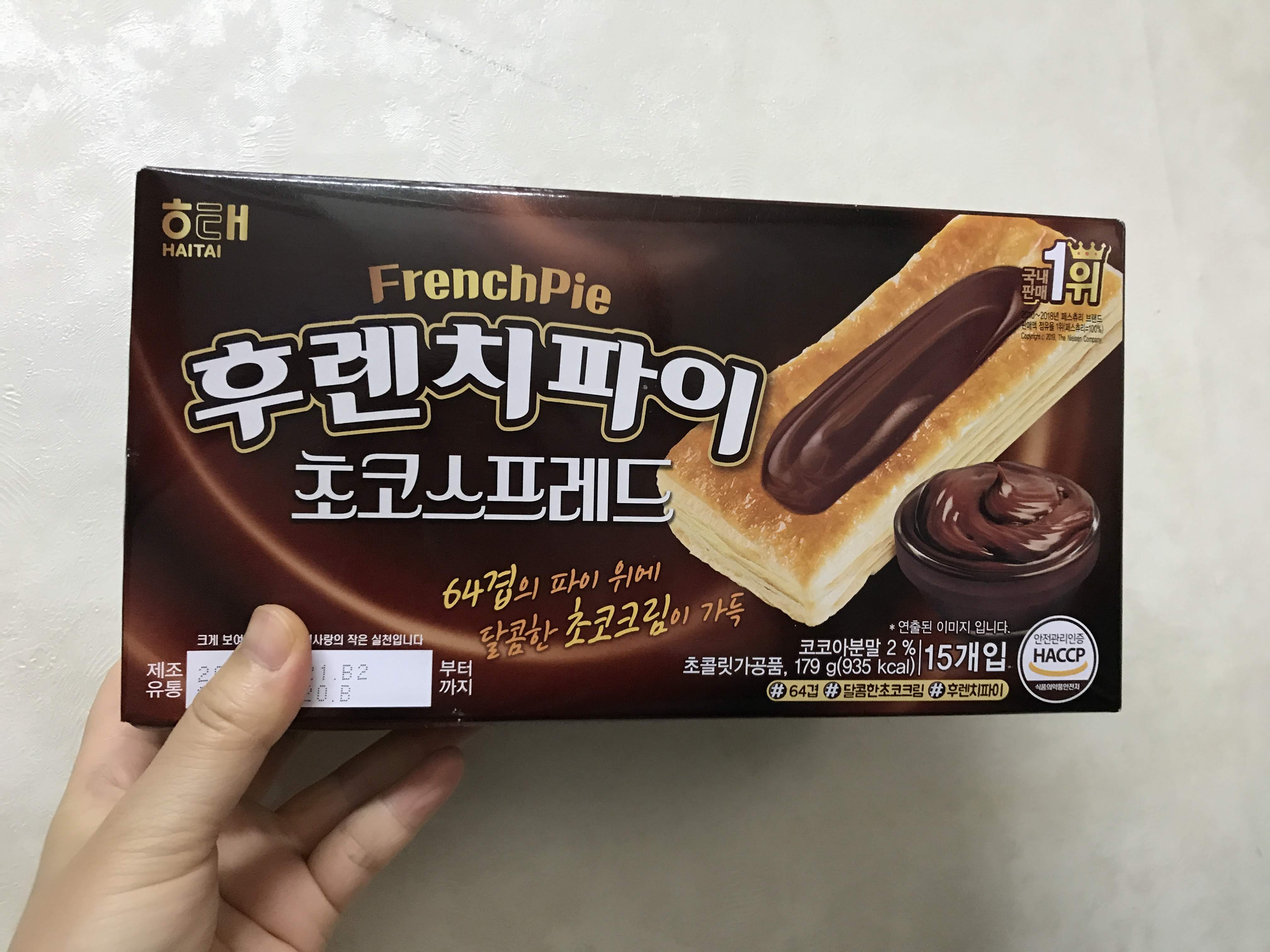이번에 새로 산 과자는 후렌치파이 초코 스프레드다.