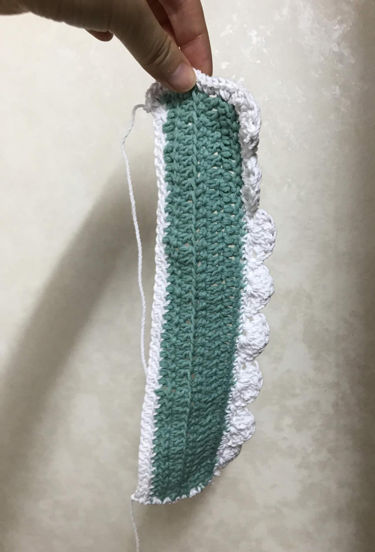 망토라고 우기는 것의 원래 생김새는 이렇다. 사실 그냥 뭐 뜨고 싶어서 죽 떠 나간 것이다. 할 줄 아는 기법?이랄까 그런 걸 좀 해 보고 싶어서... 저기 끝에 반원 모양 무늬를 하고 싶었다.