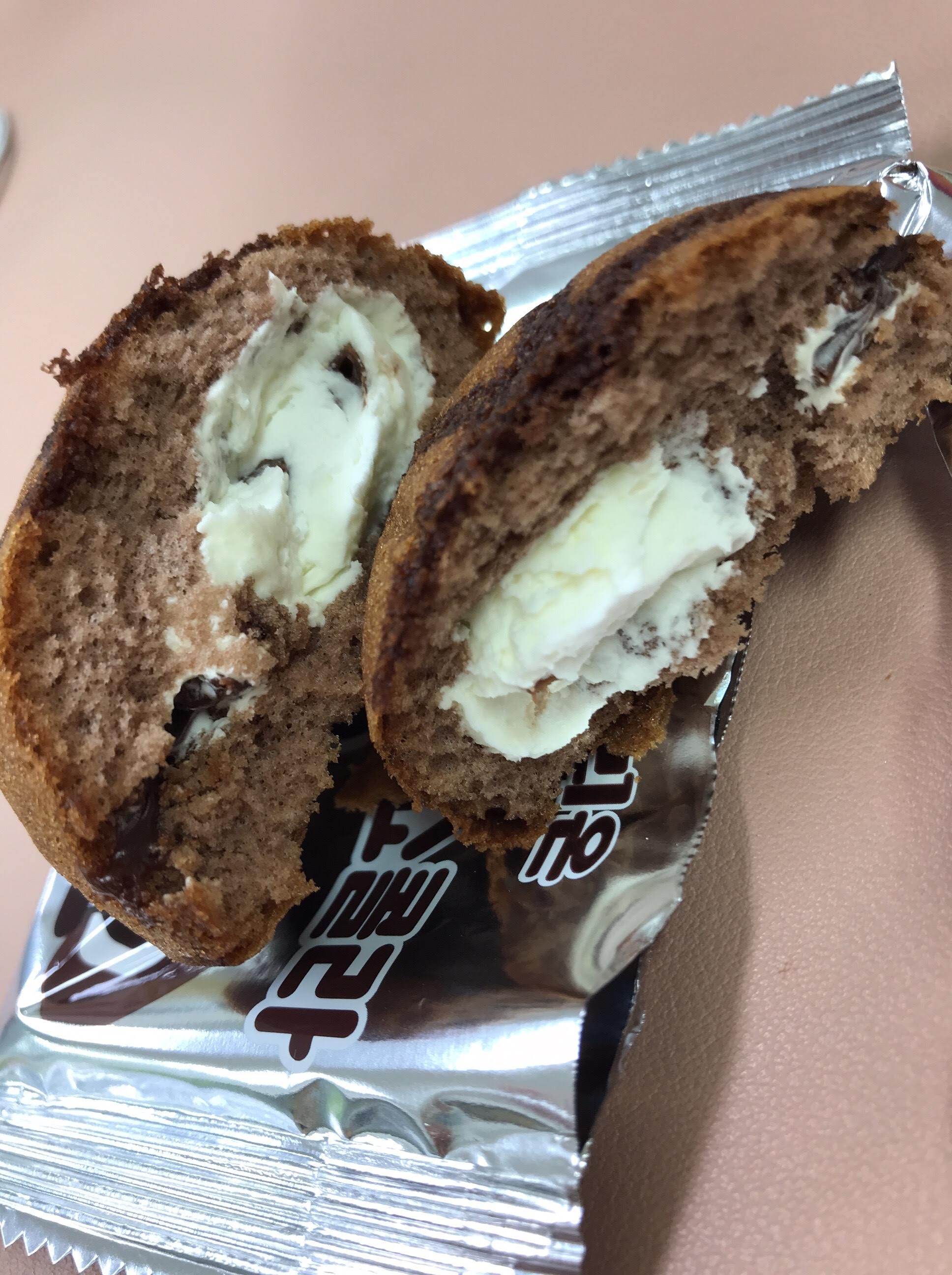 빵맛은 약간 옛날 포켓몬스터 스티커 들어 있던 빵 중에 초코빵의 시트맛이 살짝 난다. 식감은 폭신하고 부드러운 편이다. 안에 든 크림과 초코는 생각보다는 달지 않고 마찬가지로 부드럽다.
