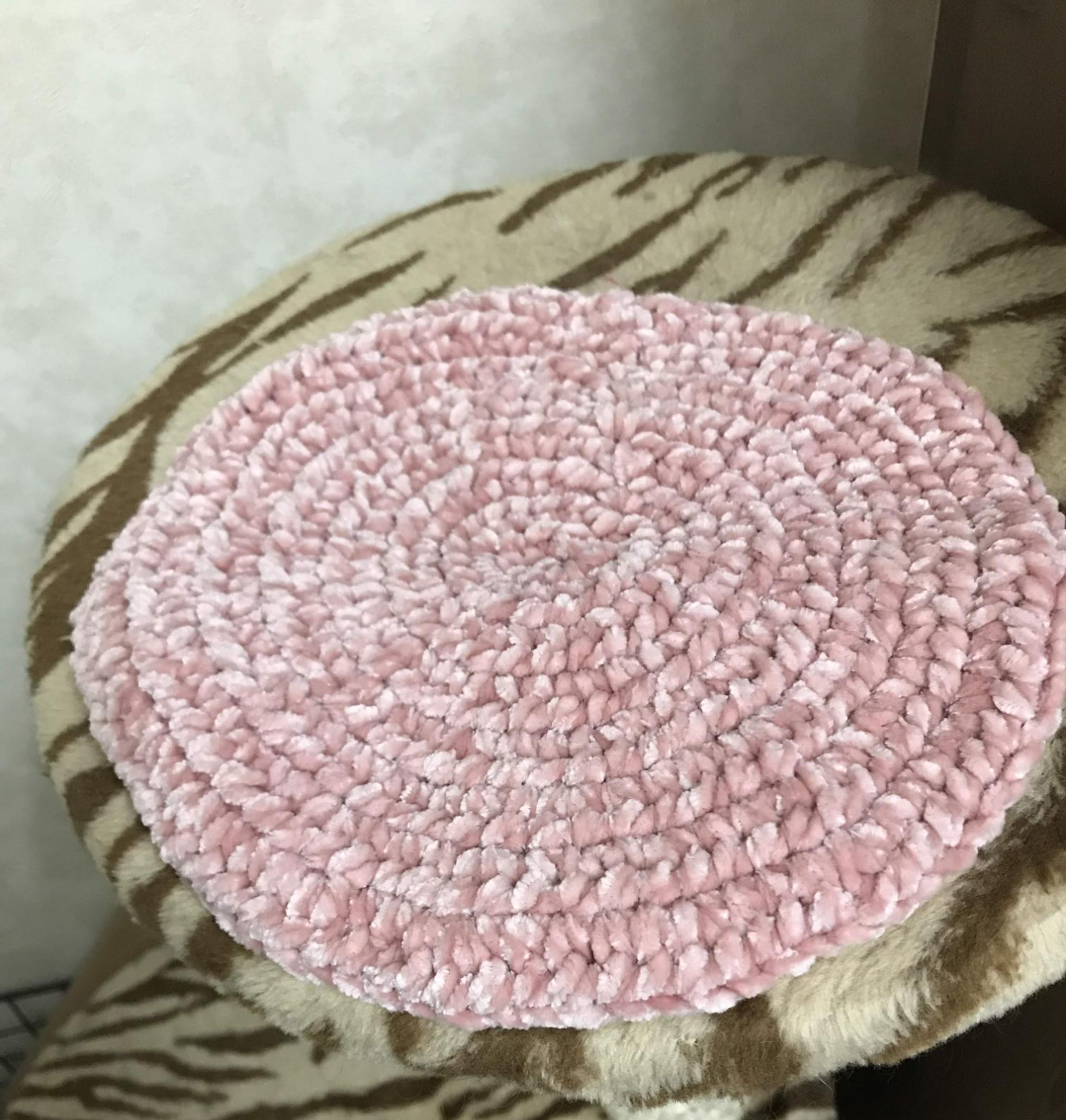 벨벳으로 방석을 뜨니까 어찌나 빨리 슝슝 떠지던지 완전 거저 뜨는 기분이었다. 사진은 분홍색 실만 써서 뜬 걸 찍었는데, 나중에 진한회색 실 남은 것도 바깥에 둘러서 더 크게 만들었다.