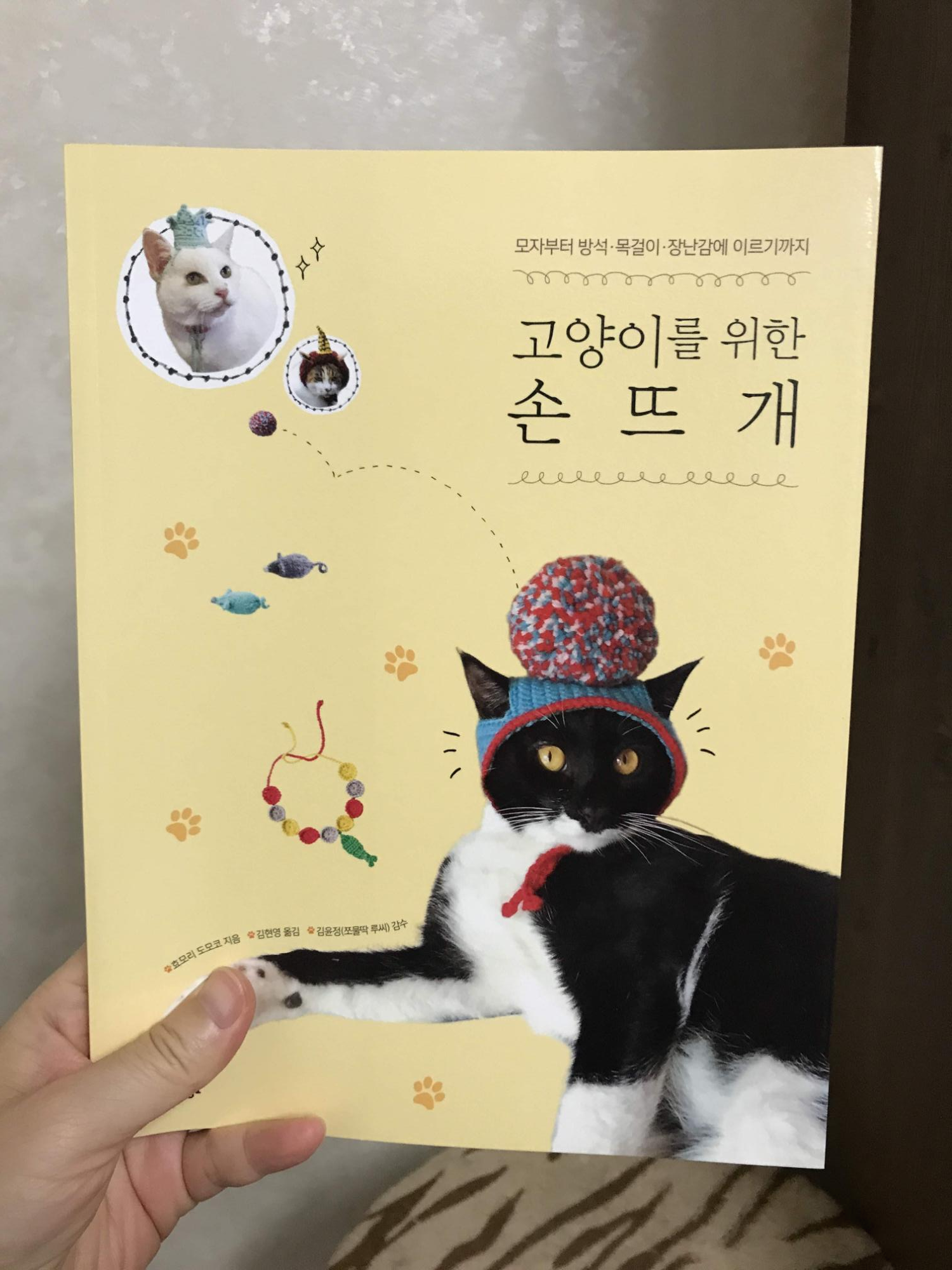 다른 서점이랑 가격 차이도 안 나길래 그냥 한 권 사 봤다. 안 그래도 친구한테 빌린 도안집도 돌려줄 때가 되었고, 고양이를 위한 손뜨개라니 안 사면 안 될 거 같았다. 구매로 이어진 데에는 표지에 나온 왕방울 모자의 귀여움이 컸다.