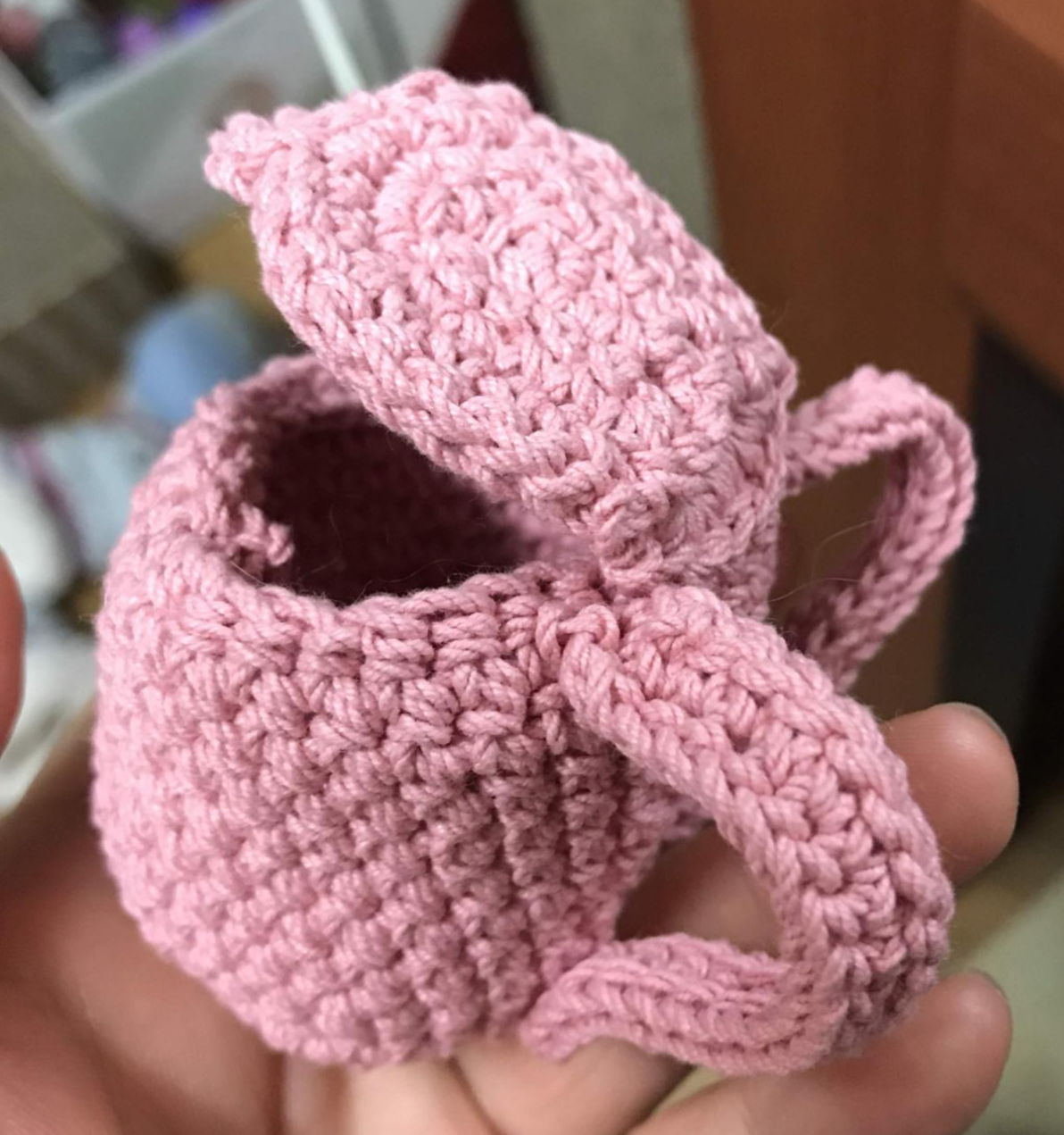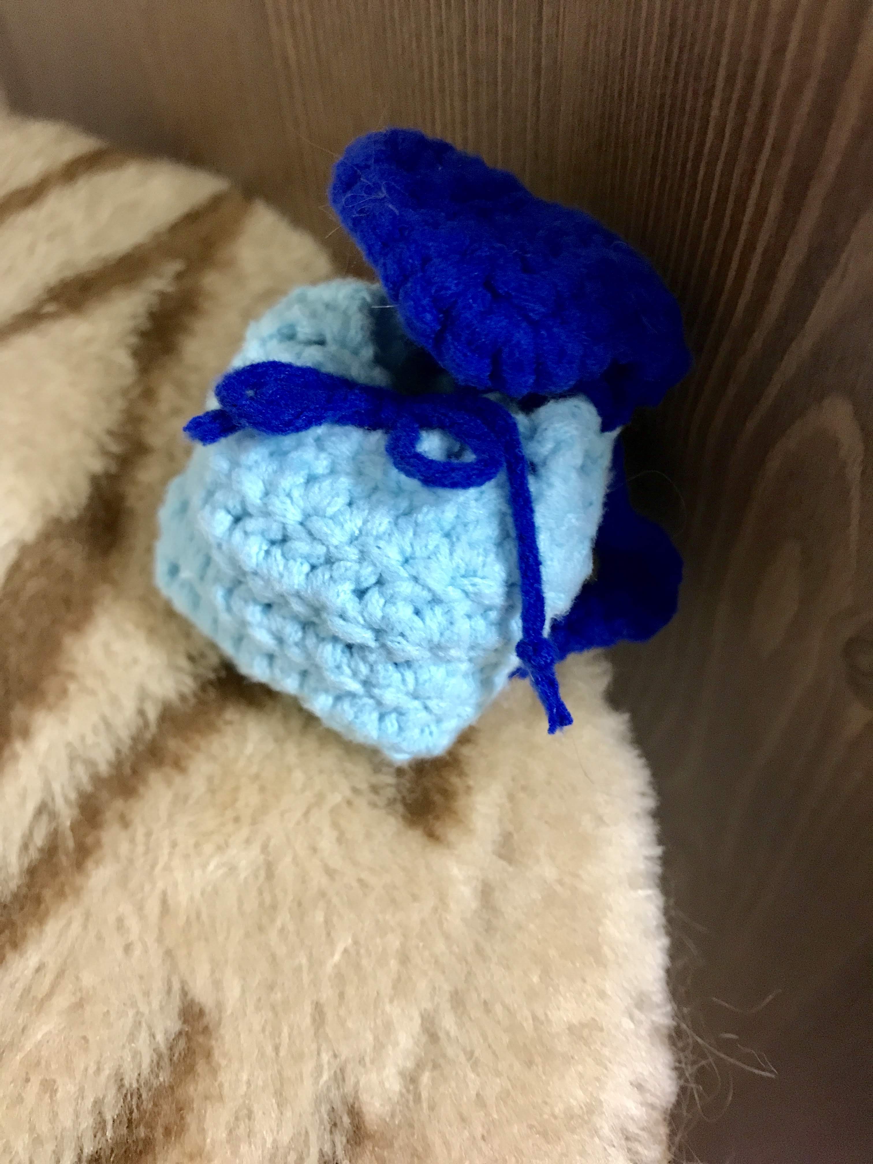 그리고 선물용으로 뜬 건 하늘색이다. 가지고 있는 미니어쳐 도안책을 참고해서 만들었다. 그래서 분홍색 가방이랑 모양도 다르다. 이건 좀 말랑한 실로 떠서 뜰 때 훨씬 편했다. 큰 거 뜰 때보다 이런 작은 거 뜰 때 손이 더 많이 간다.