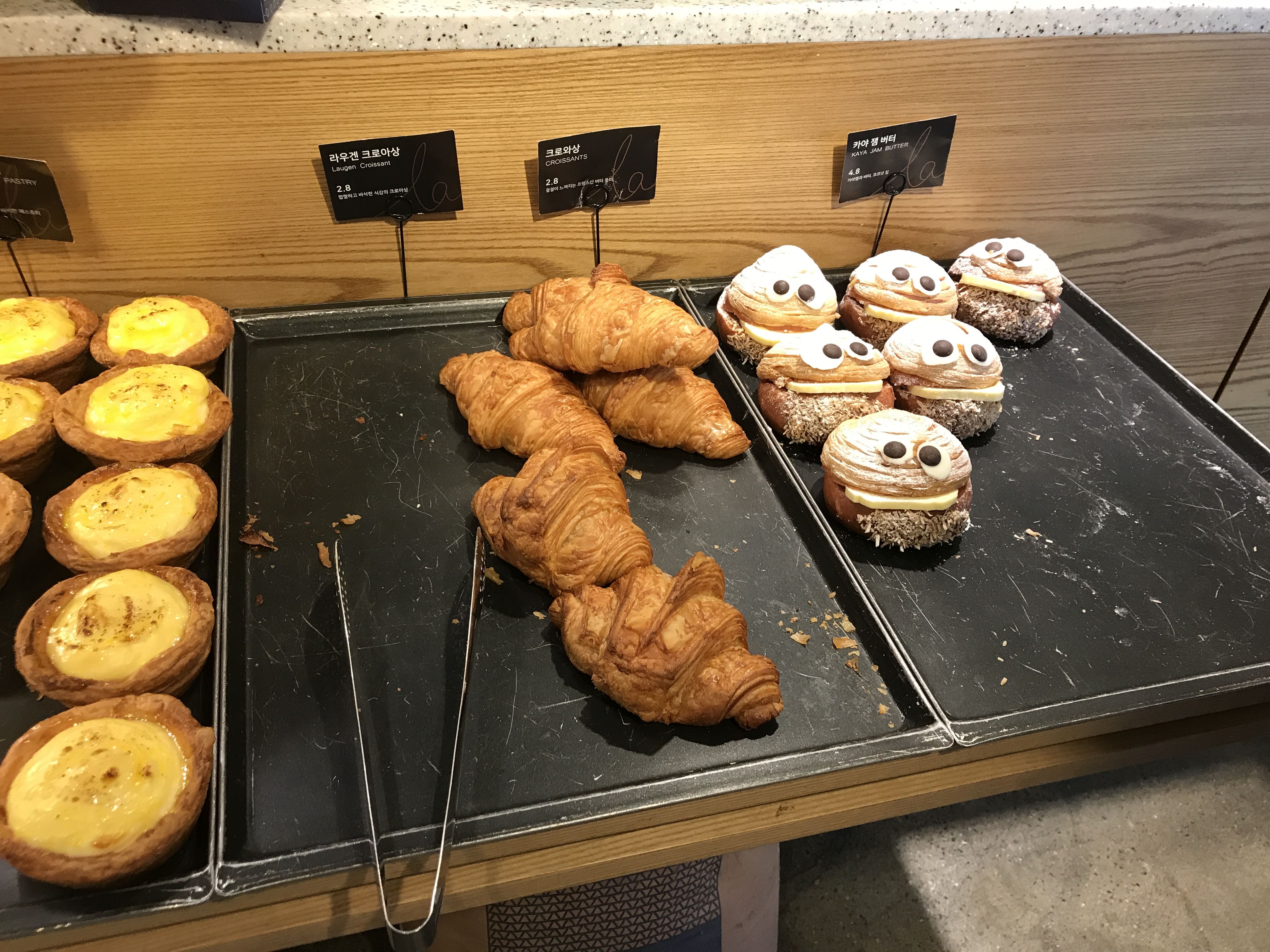 보통 식빵, 발효빵, 이런 식으로 주력이 있고 그런 애들이 가장 종류가 많은데 여기는 골고루 만들어 파는 느낌이었다. 그 말은 정말 눈 돌아간다는 뜻이다. 이 빵도 저 빵도 다 너무 맛있어 보이고 종류가 많아서 인내심을 발휘해야 했다.