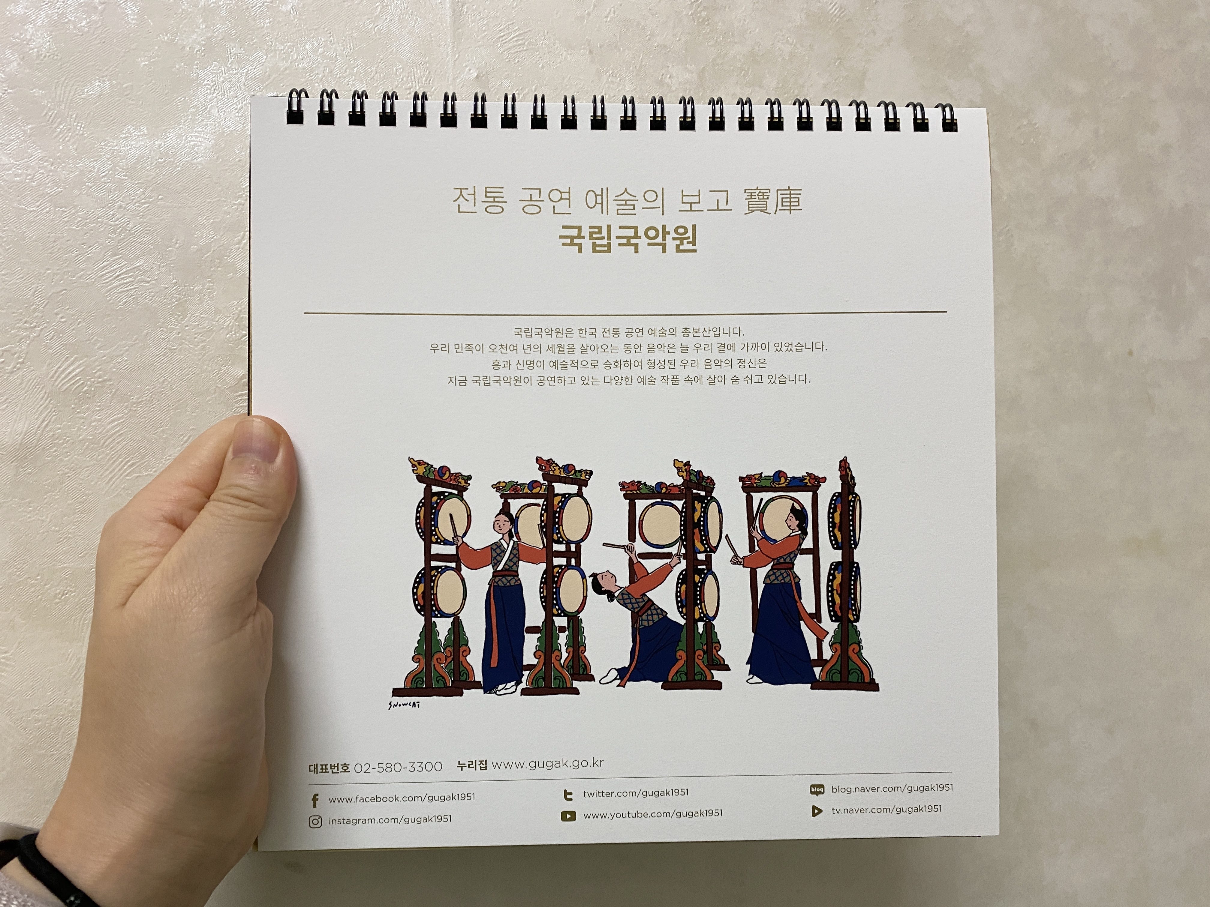 귀엽고 예쁜 달력이었다. 2020년에도 국립국악원 달력과 함꼐 해야지.