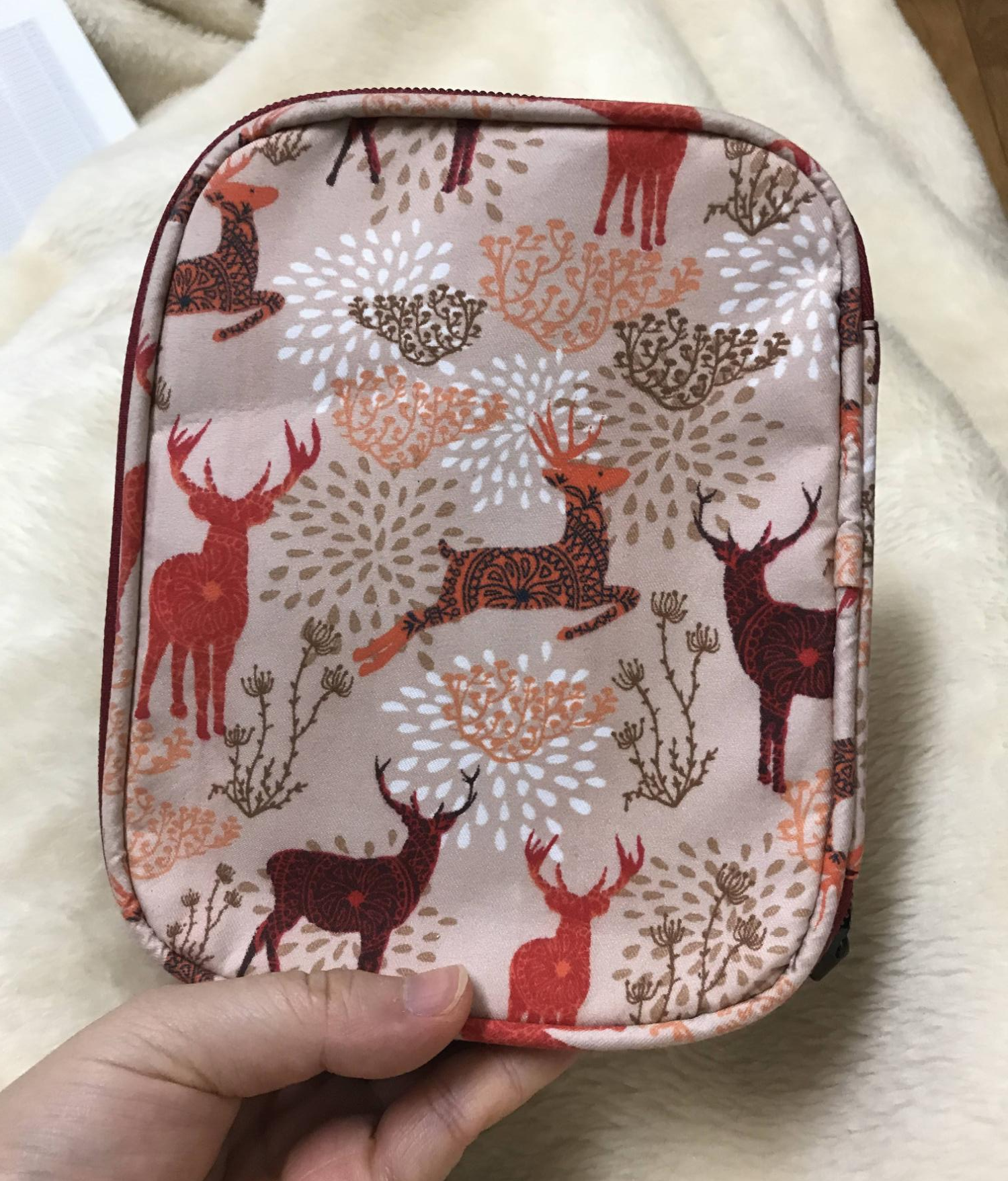 많은 고민 끝에 주문한 코바늘 케이스. 순록이 그려진 모양의 단순하다면 단순한 케이스다. 그래도 내가 가진 코바늘을 전부 수납할 수 있고, 앞뒤로 쓸 수 있으며 디자인이 보기 나쁘지는 않아서 구매했다. 그리고 수납 부분이 앞부분과 뒷부분으로 나누어져 있다.