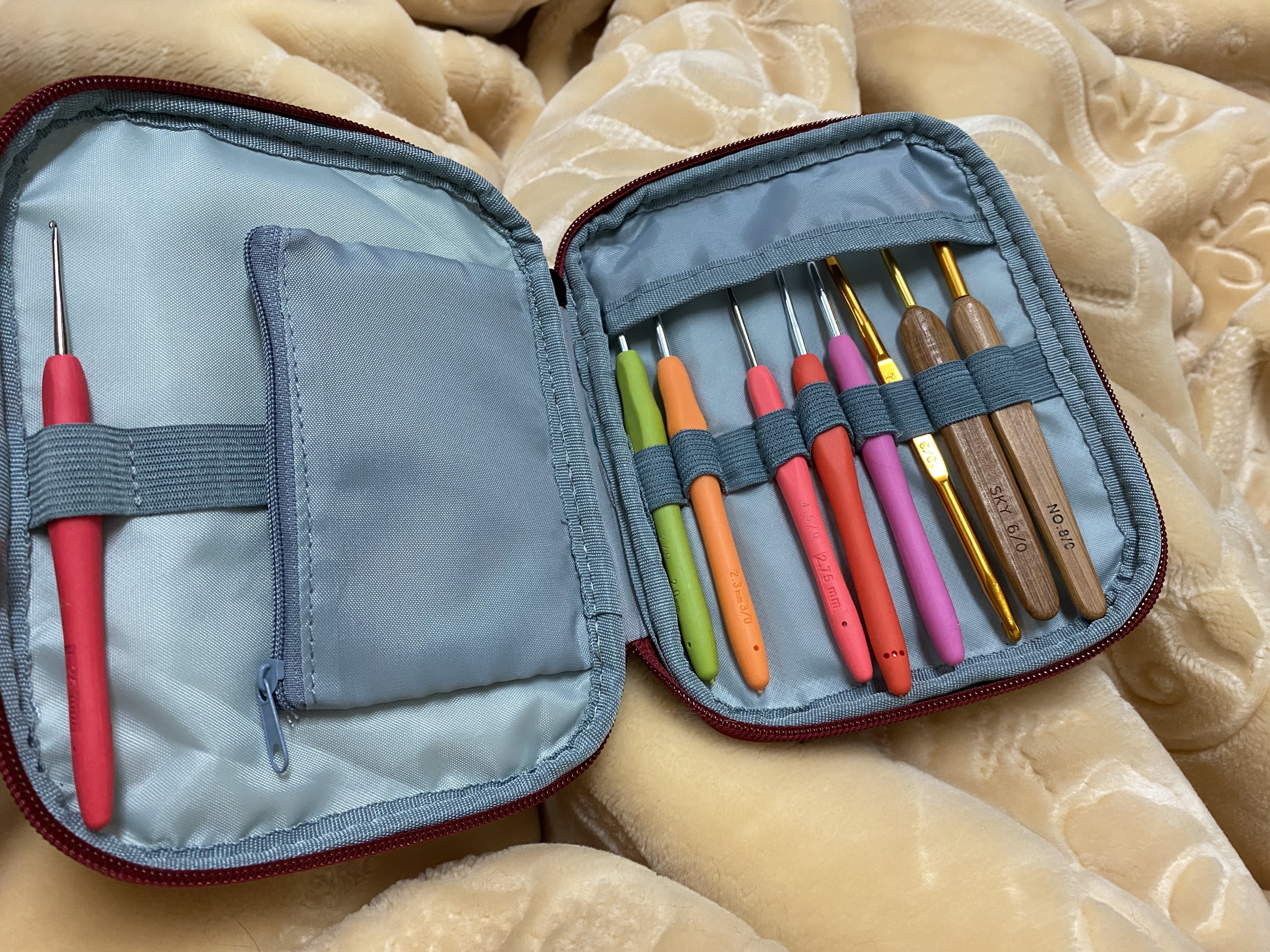 코바늘 케이스가 은근 비싸더라. 코바늘을 만드는 업체에서 만들어 파는 케이스는 가격이...!! 비싼 걸 사긴 싫고 싼 건 마음에 들지 않아서 엄청 찾았다. 화장용 브러시 파우치를 써 보면 어떨까 했지만 브러시는 코바늘보다 훨씬 길어서 그것도 무리라고 판단했다.