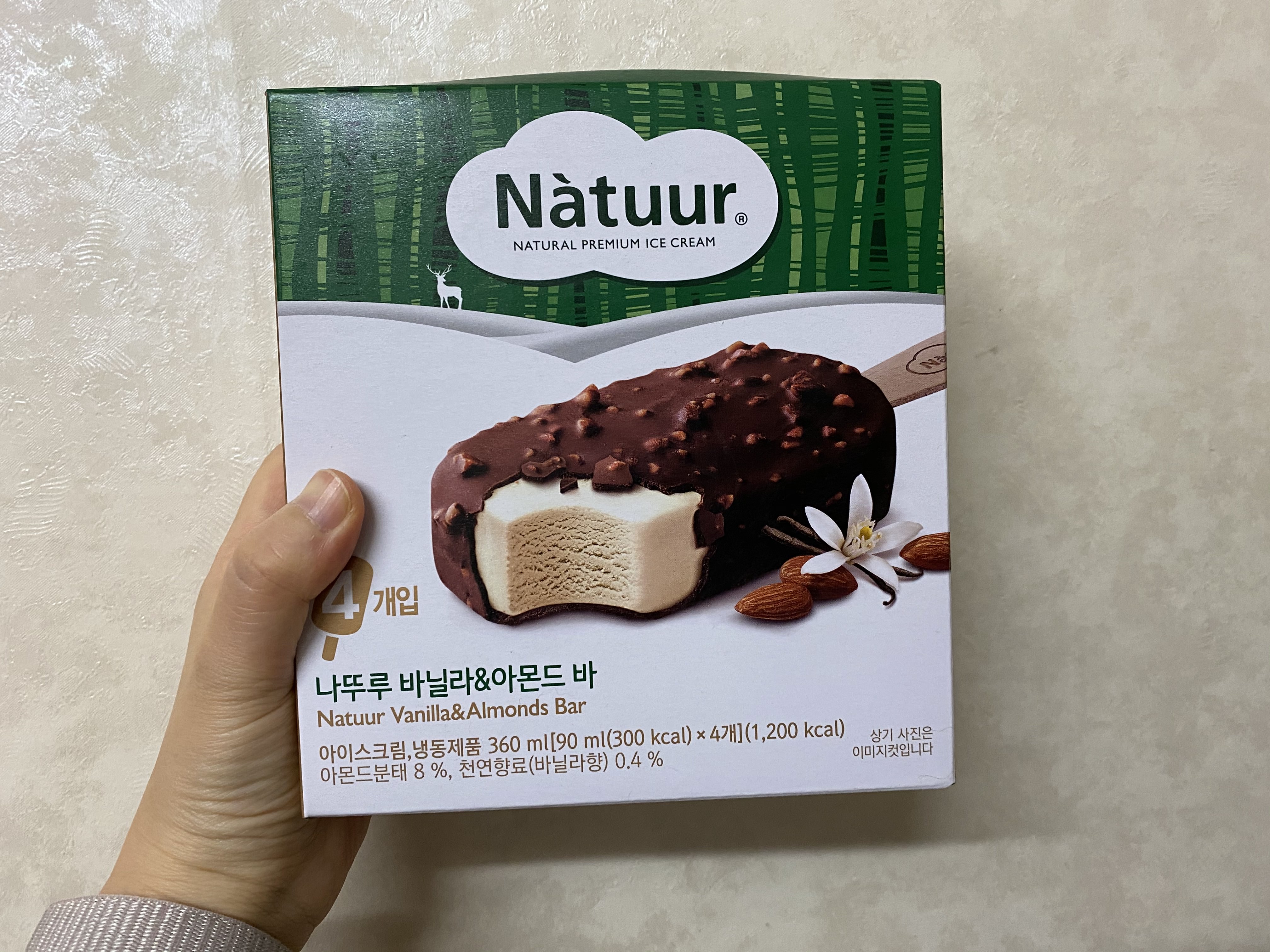 산 건 나뚜루 바닐라&아몬드 바. 총 4개가 들어 있다.