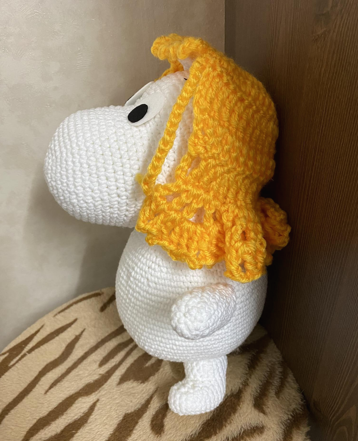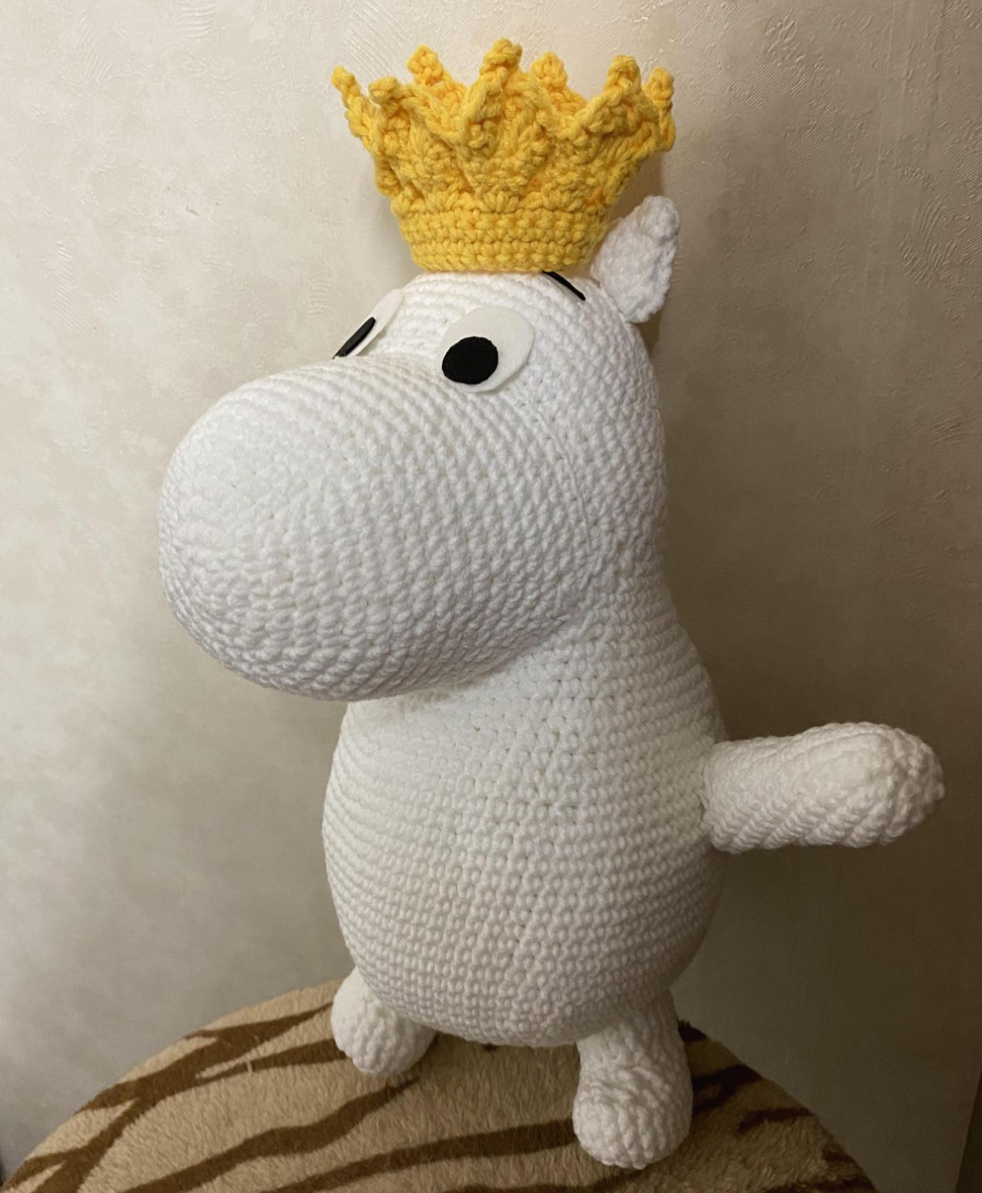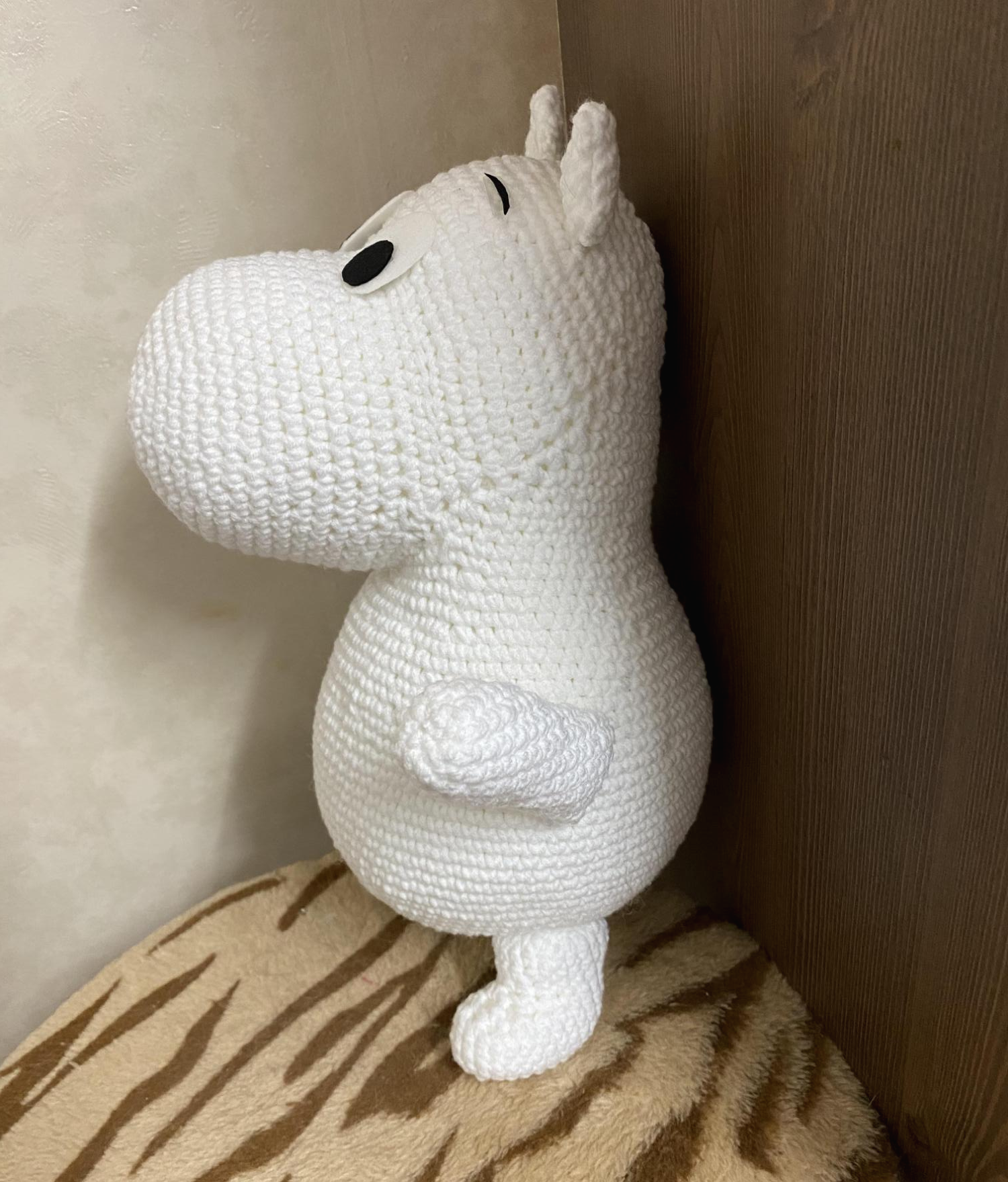 아무튼 그런 우여곡절 끝에 탄생한 무민. 펠트지 사서 눈까지 해 주니까 그래도 무민 같다. 아, 나는 팔에 철사를 안 넣었다. 도안에는 넣으라고 되어 있었지만 가지고 있는 철사가 너무 물러서 쓸 수 없었다.
