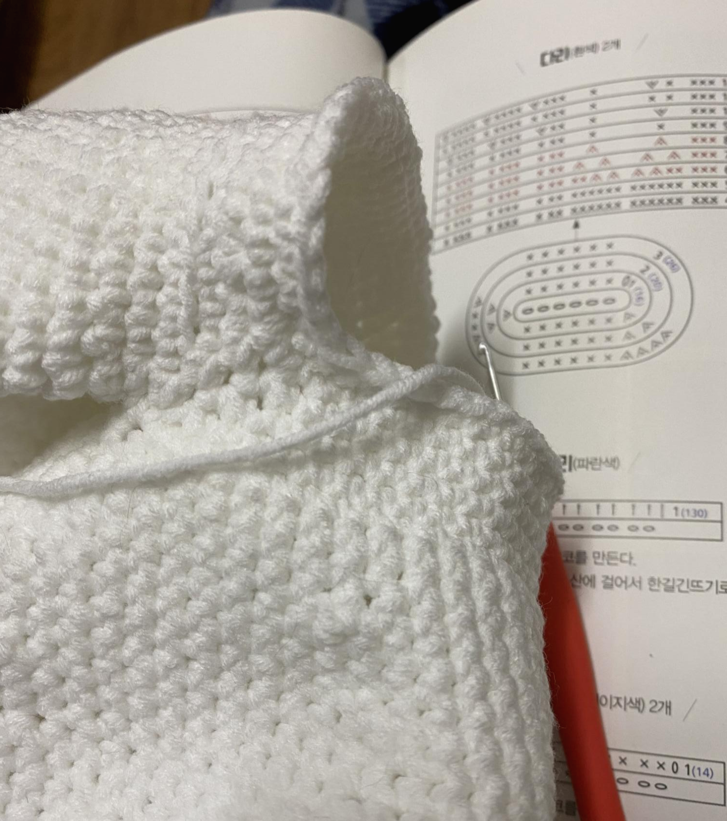 도안과 뜨기 과정이 상세하게 나와 있어서 따라하는데 크게 어려움은 없었다. 아, 몸통과 목을 이을 때 어떻게 하라는 건지 잘 이해가 안 되서 여러 번 풀었다가 다시 했다가를 반복했다. 그런데 나만 그렇지 다른 분들은 다 잘하실 듯. ㅠㅠ 유난히 도안도 좀 잘 이해를 못한다. 하여간 정말 재능은 없다.