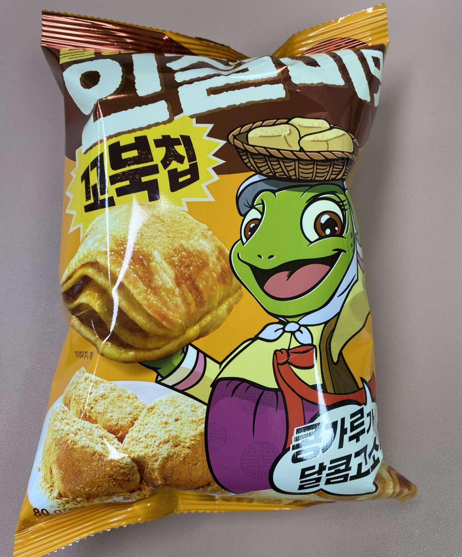 꼬북칩에서 인절미 맛을 내놓았다. 거북 아낙네가 콩고물 그득 묻은 인절미가 든 함박을 이고 있다. 토속적인 게 귀엽다.