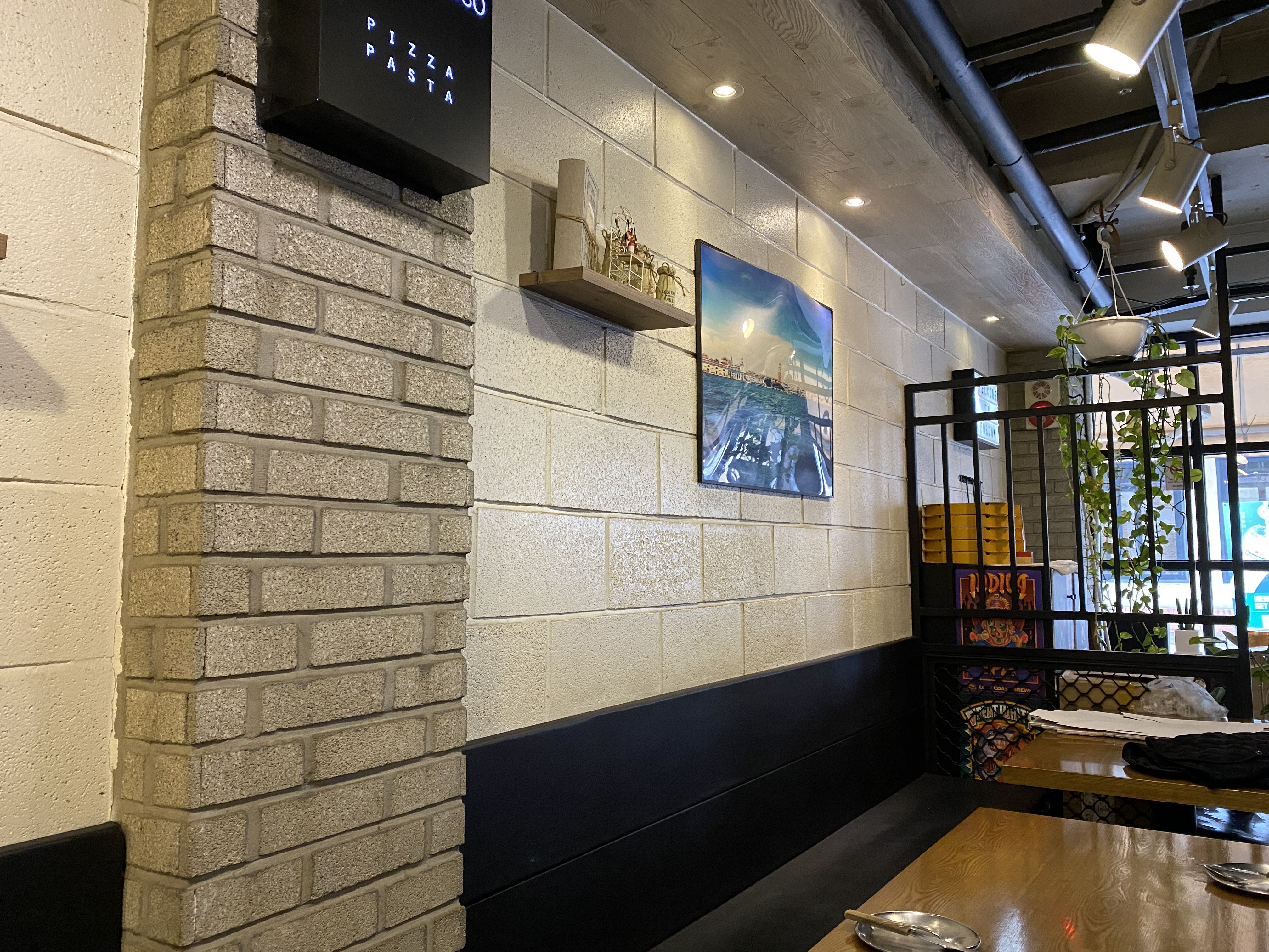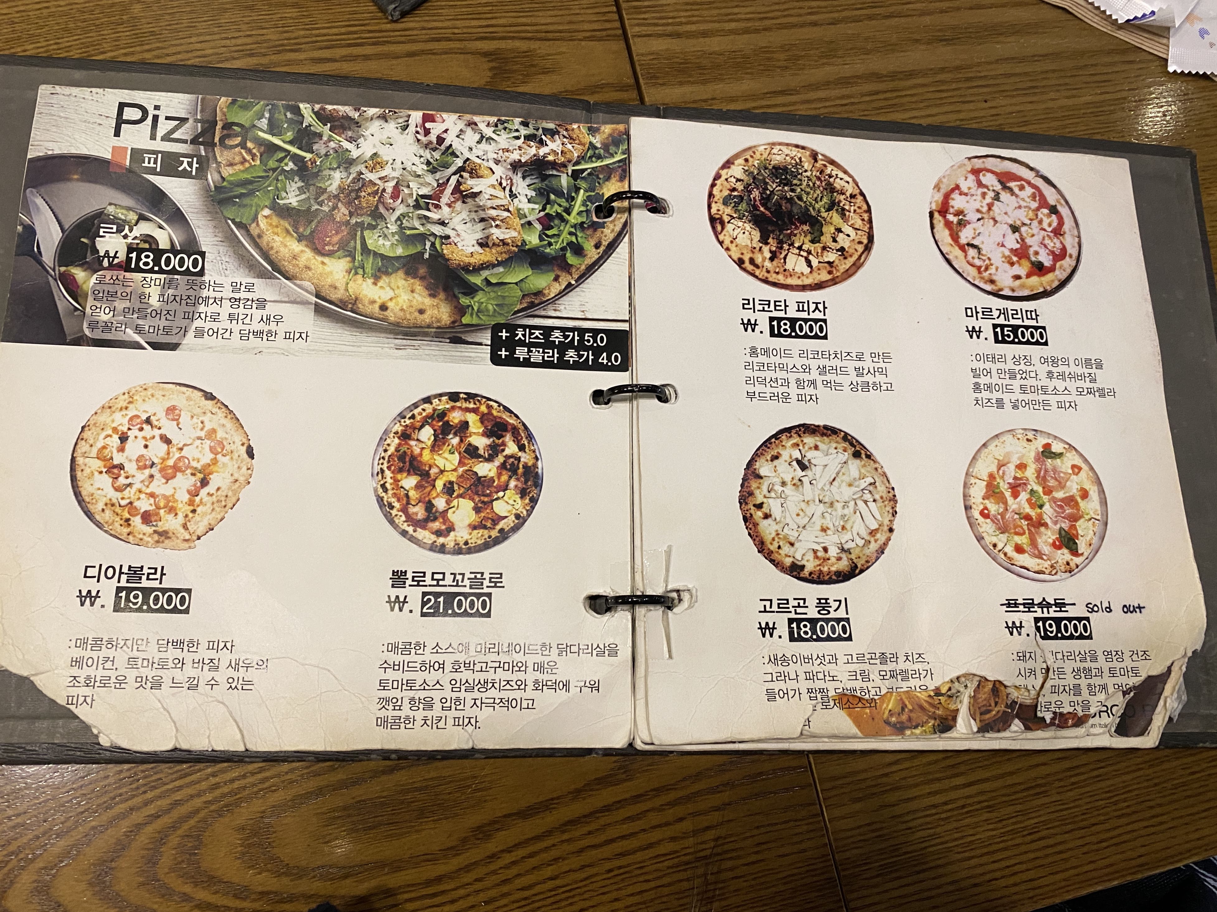 친구 추천으로 리코타 피자와 그랑끼오를 시켰다. 가게 안은 깔끔하다. 가게 안 통로가 좀 좁아서 통로쪽에 앉은 나는 의자를 바짝 당겨서 앉아야 했는데 그거 하나 불편했다.