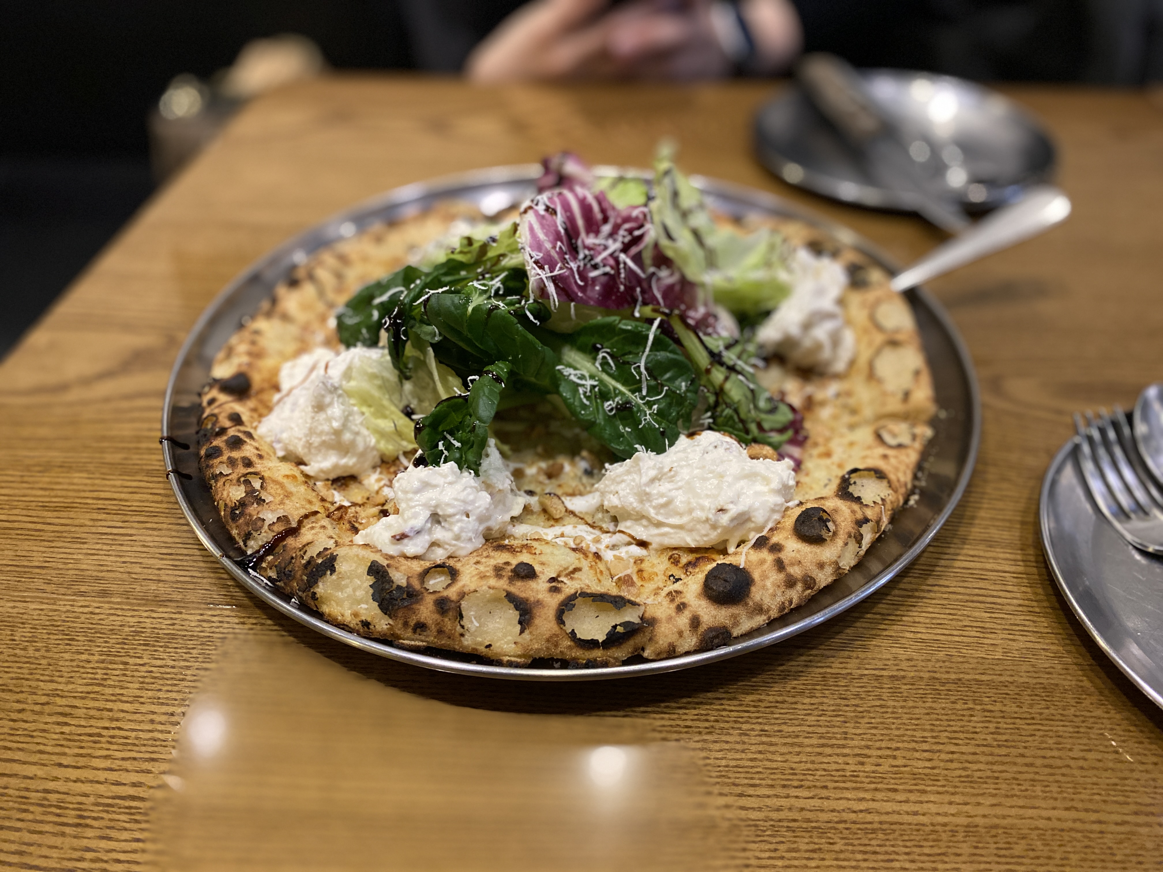 피자 도우가 진짜 떡처럼 찰기가 있어서 쫀득쫀득하고 화덕 피자 특유의 향과 살짝 바싹 구워진 부분의 바삭함이 어우러져서 맛났다. 치즈랑 샐러드까지 챱챱 올려서 먹으면 저절로 행복해진다.