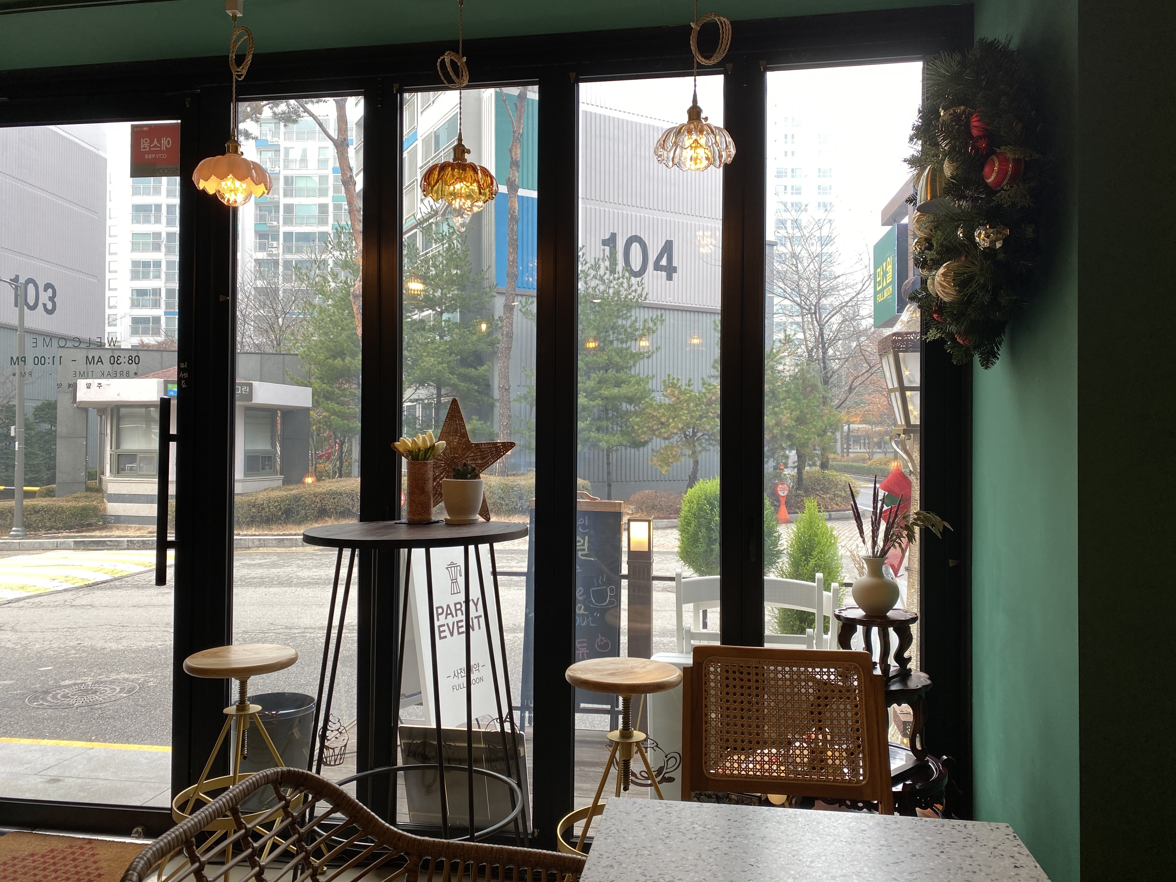 작은 카페가 있던 자리가 비고 공사가 시작되더니 새로운 카페가 들어왔다. 새 카페는 와인과 카페를 함께하는 공간으로 만월이라는 이름이다. 일단 카페 색이 내가 좋아하는 아름다운 청록색이라 계속 눈여겨보고 있었다.