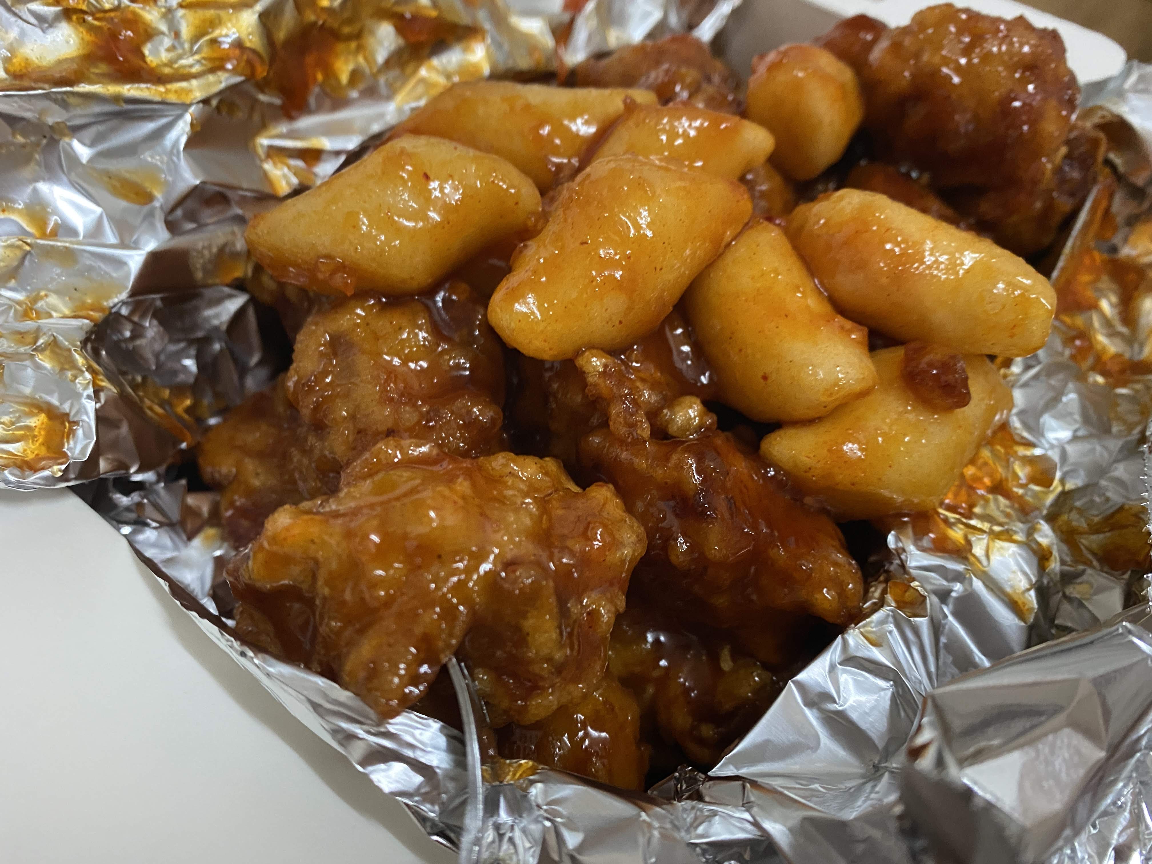 같이 넣어 주는 떡도 정말 쫀득하고 맛있다. 강정 양념은 매콤이라고 해서 아주 맵거나 하진 않고 일반적이다. 강정 덩어리도 꽤 크고 뼈 없는 순살 강정이라 먹기도 좋다. 무엇보다 양이 많아서 너무 행복하다. 또 먹고 싶다.
