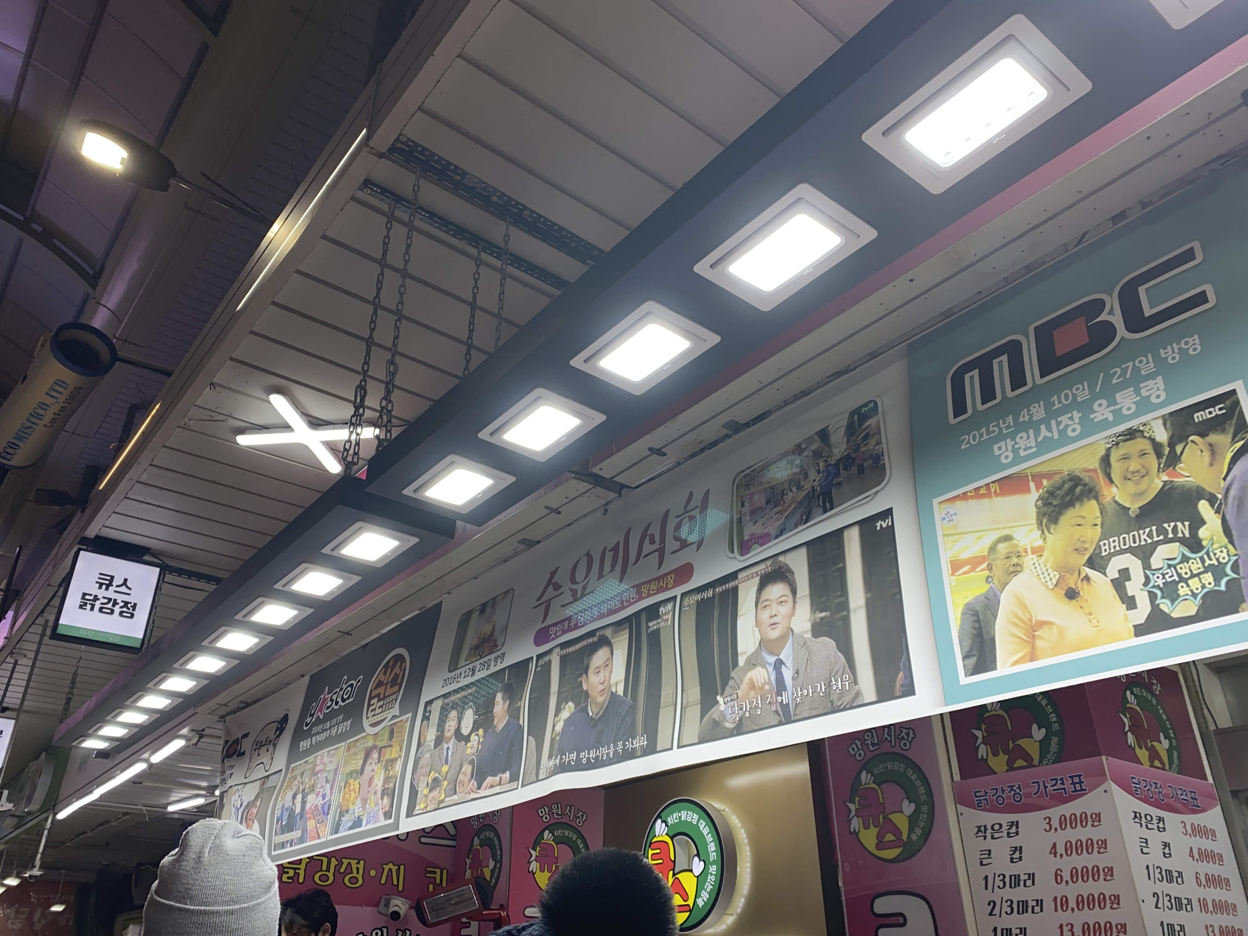 모처럼 망원 시장에 갔다. 망원 시장에 가면 먹을 것이 참 많지만, 꼭 들리는 곳은 큐스 닭강정이다.