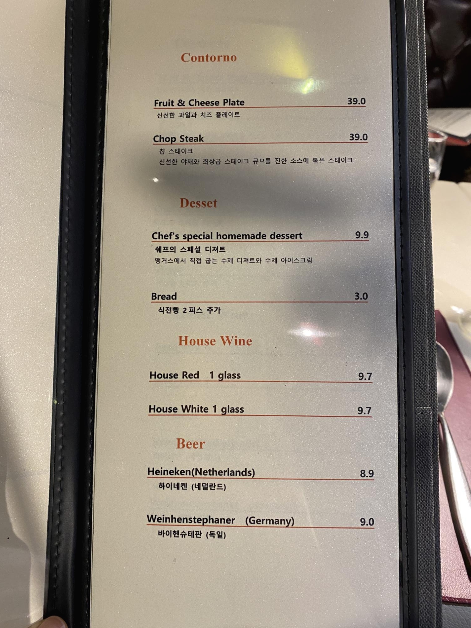 디저트는 그날그날 바뀐다. 오늘은 브라우니와 초콜릿, 체리. 달달한 브라우니와 초콜릿을 먹고 통통한 생체리로 마무리했다. 조용하고 분위기 있게 식사할 수 있어서 좋았다.