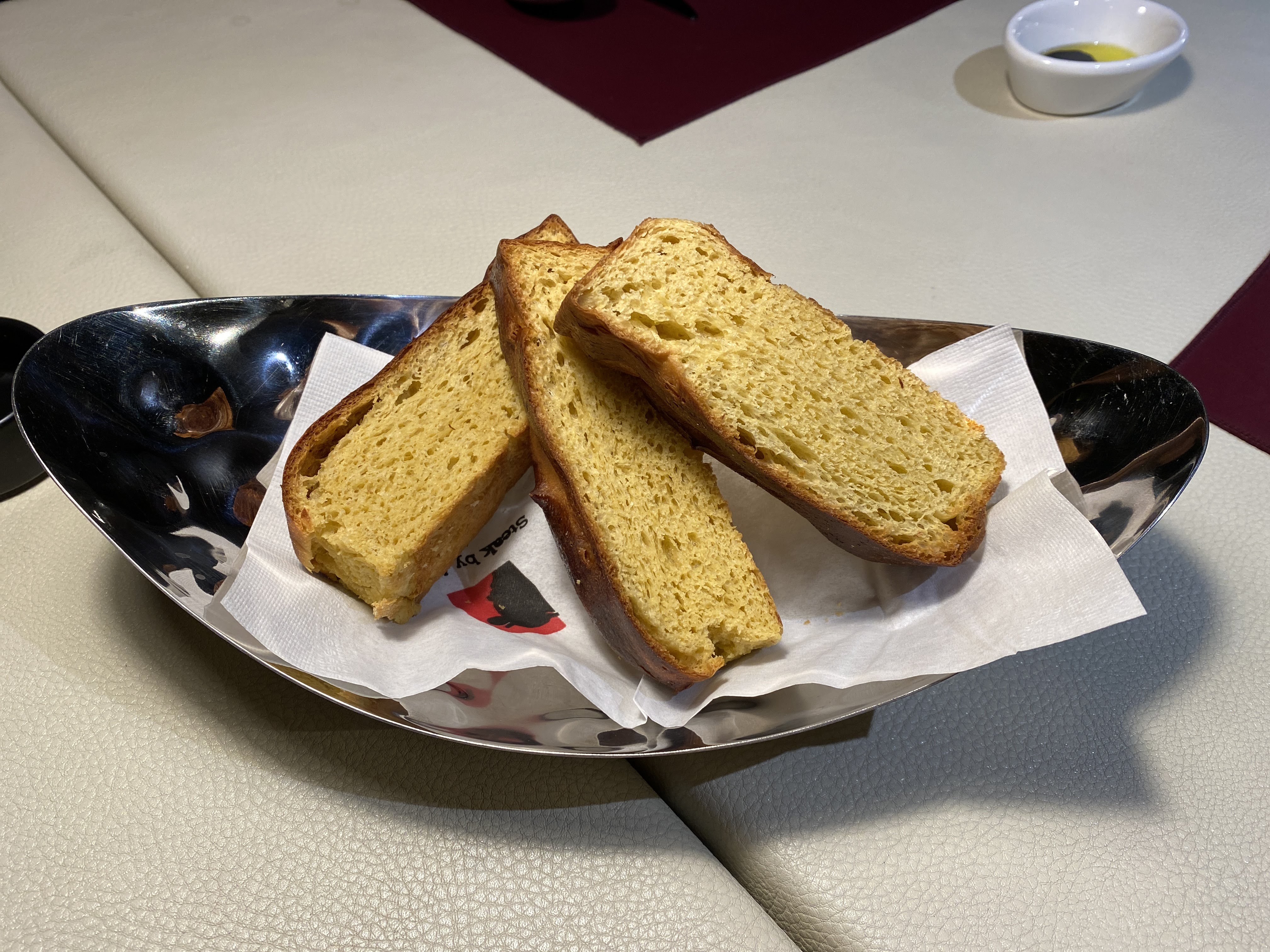 식전빵이 나왔다. 빵은 따뜻하고 약간의 시트러스 향을 품고 있었다. 함께 나온 발사믹 소스에 콕콕 찍어서 먹었다.