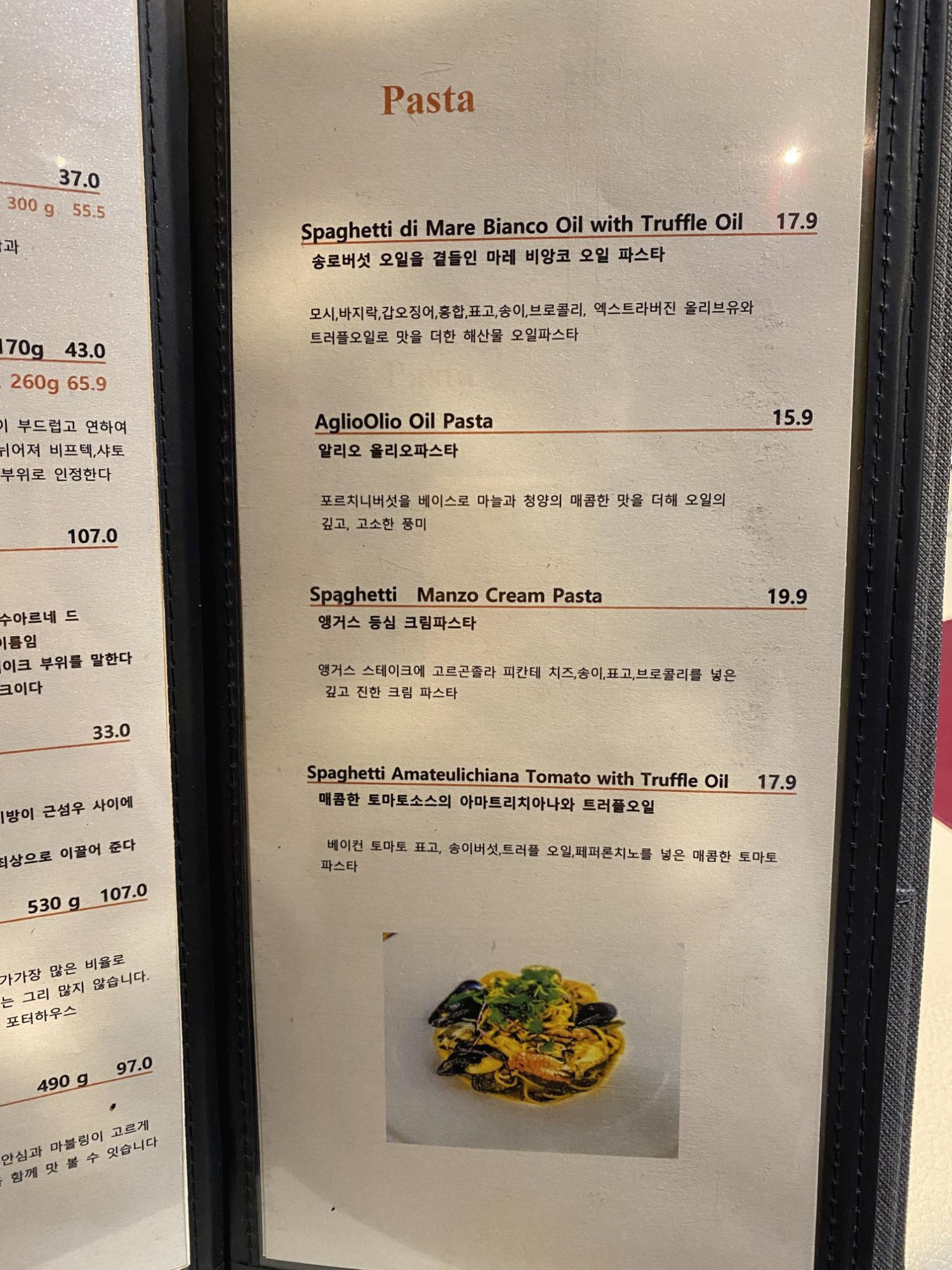 이건 추가로 시킨 앵거스 등심 크림파스타. 등심이 토핑된 파스타로 크림 맛이 진하면서도 깔끔했다.