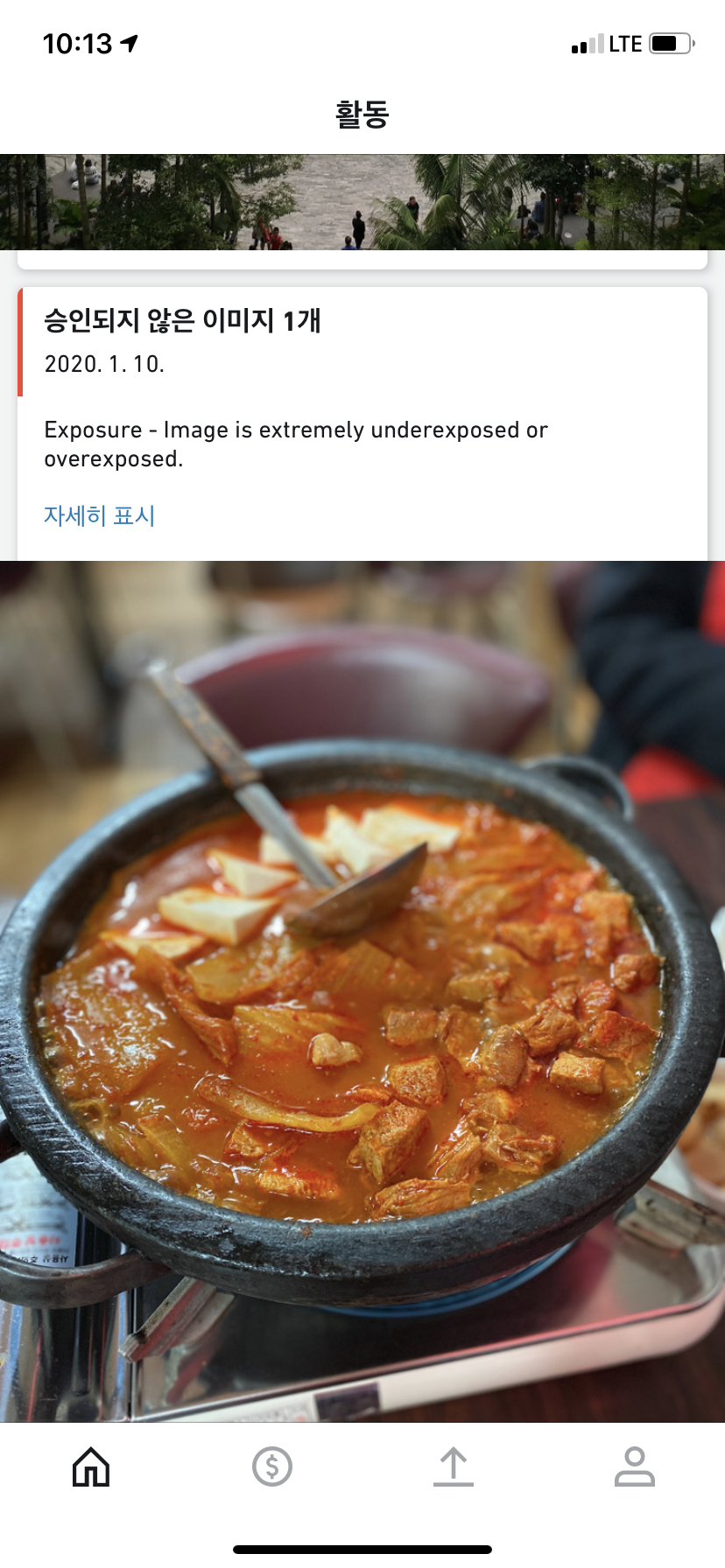 검토를 통과하지 못한 이유도 어플에서 확인할 수 있다. 피사체가 초점이 안 맞는다는 이유로 반려당한 것 같다.