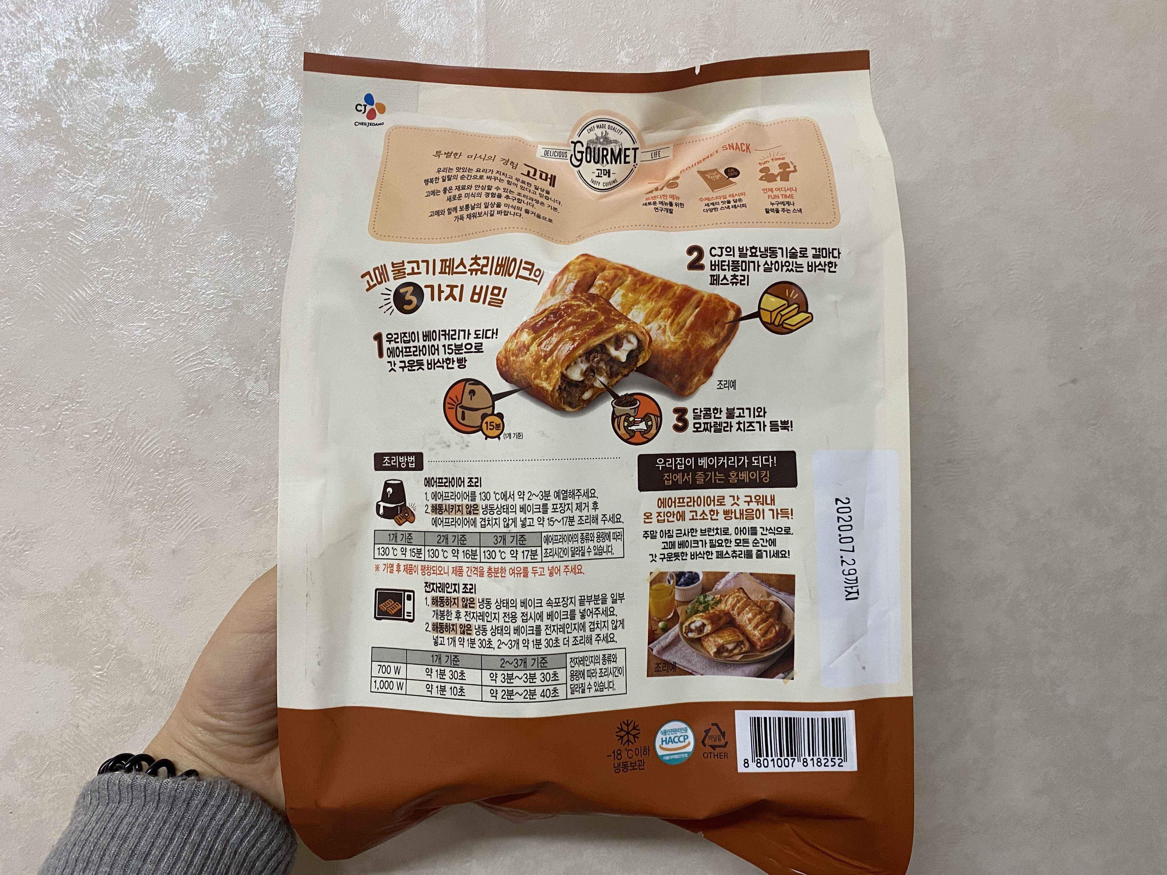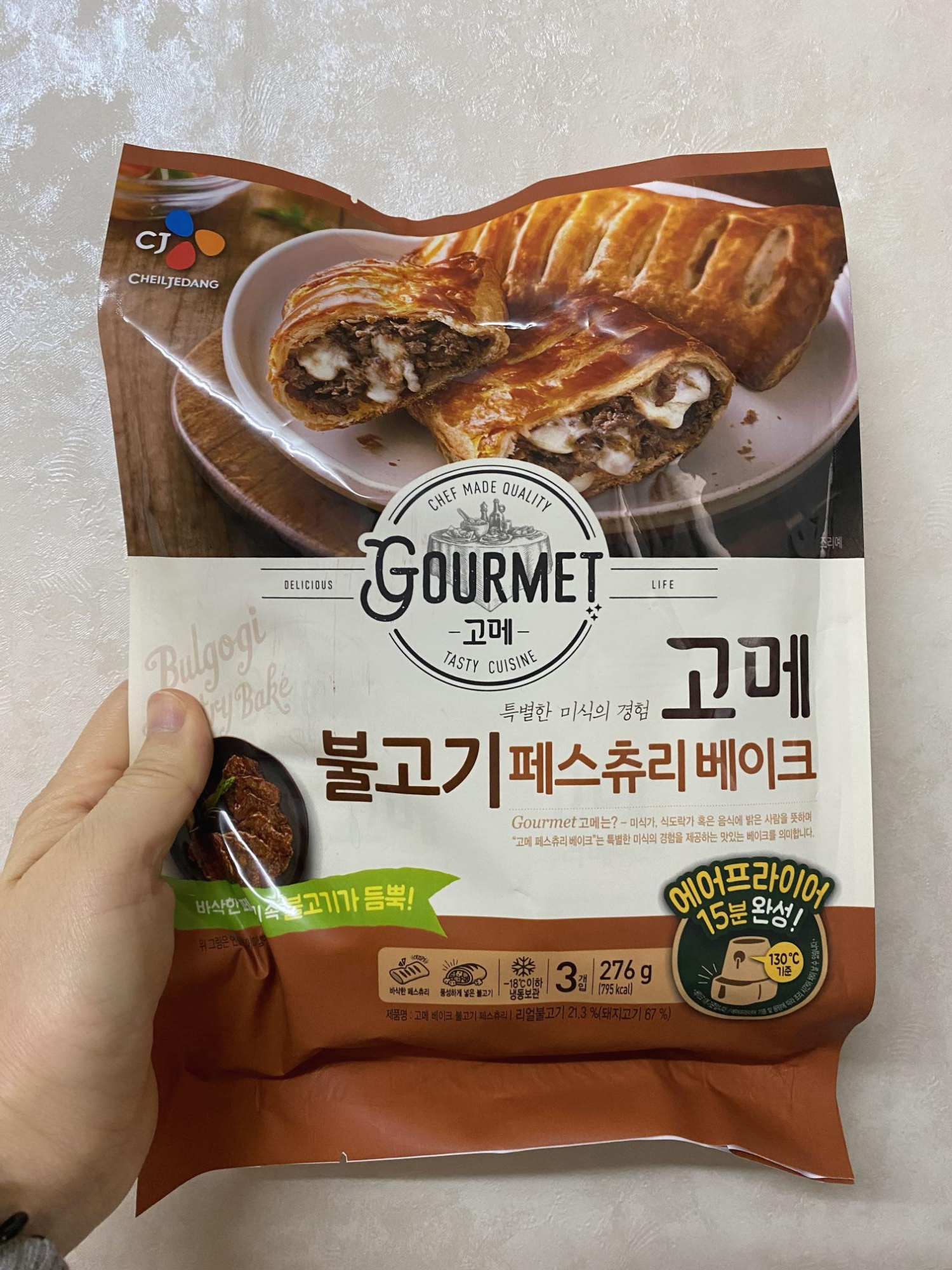 에어프라이어가 생겼으니 너무 궁금했던 생지 굽기를 해 보자! 싶어서 산 CJ 고메 불고기 페스츄리베이크. 나는 달콤한 디저트 빵보다는 이런 식사류의 짭짤한 빵을 좋아한다.