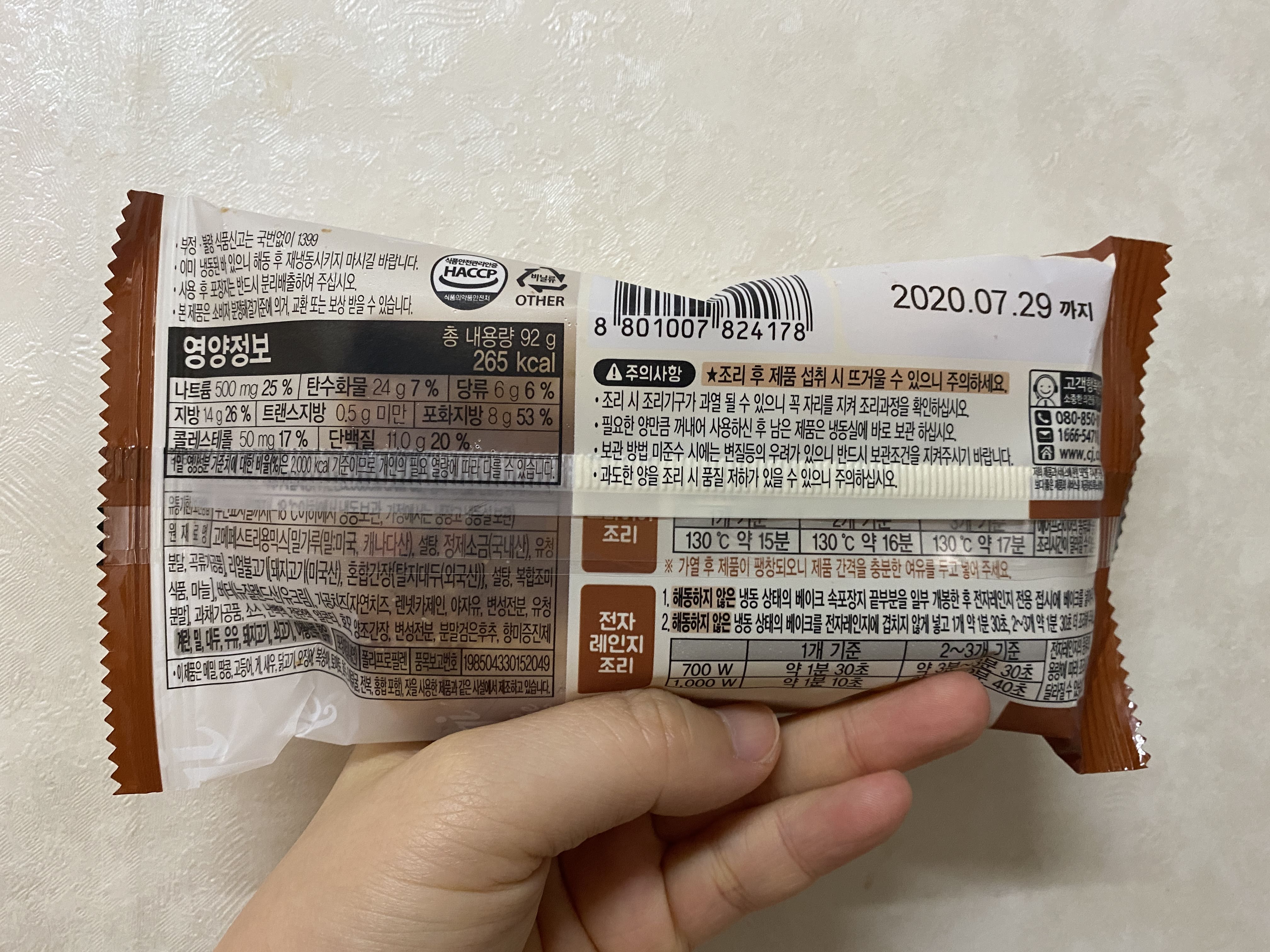 전자렌지와 에어프라이어 모두 조리가 가능한 편리한 빵이다. 조리 방법도 설명이 잘 되어 있다.