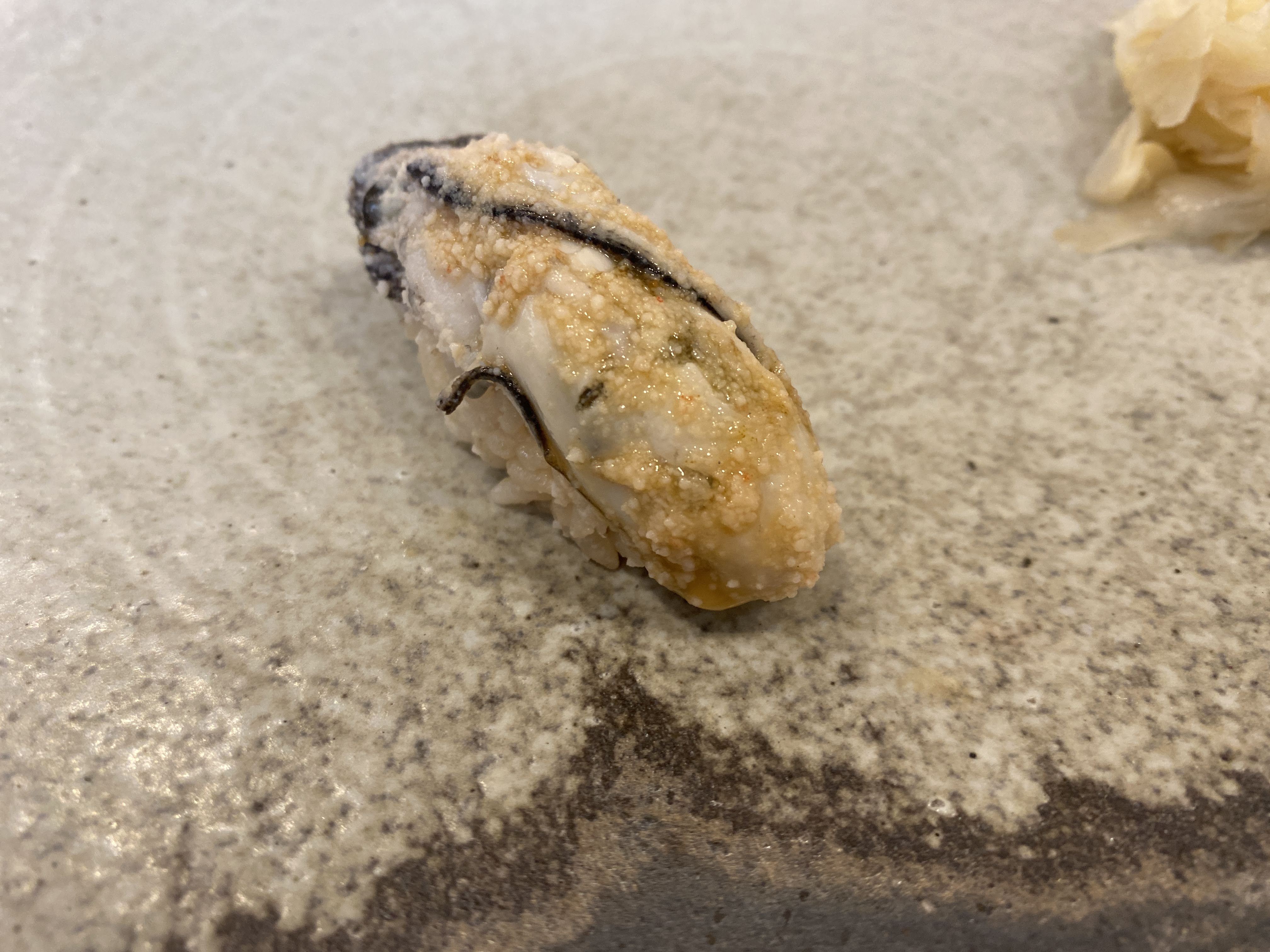 굴. 굴은 굴맛이다. 무언가 더 얹혀 있었지만 기억은 안 난다. 굴을 초밥으로 먹은 건 처음이다.