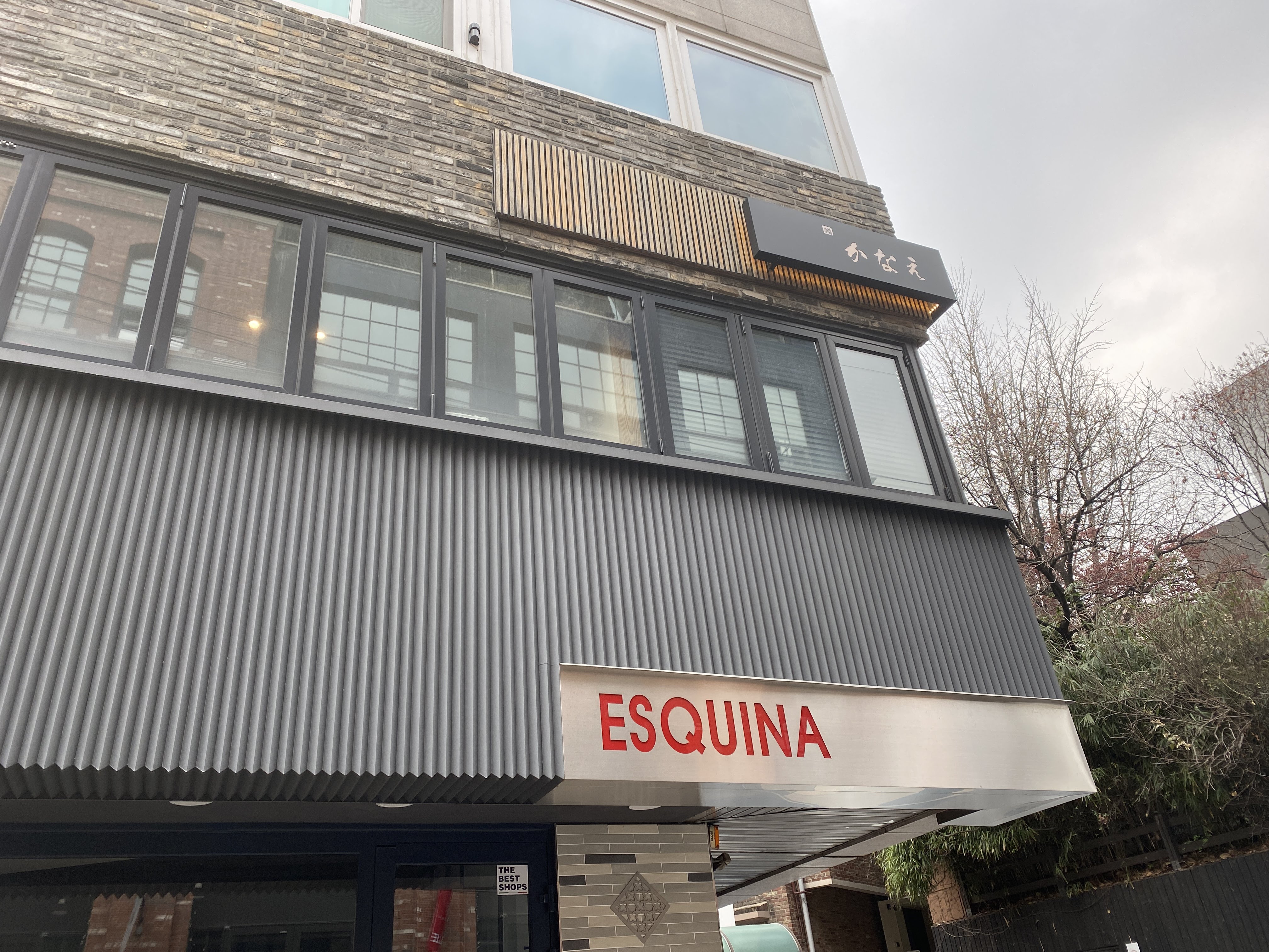 바깥에서 본 스시 카나에. 건물 2층이다.