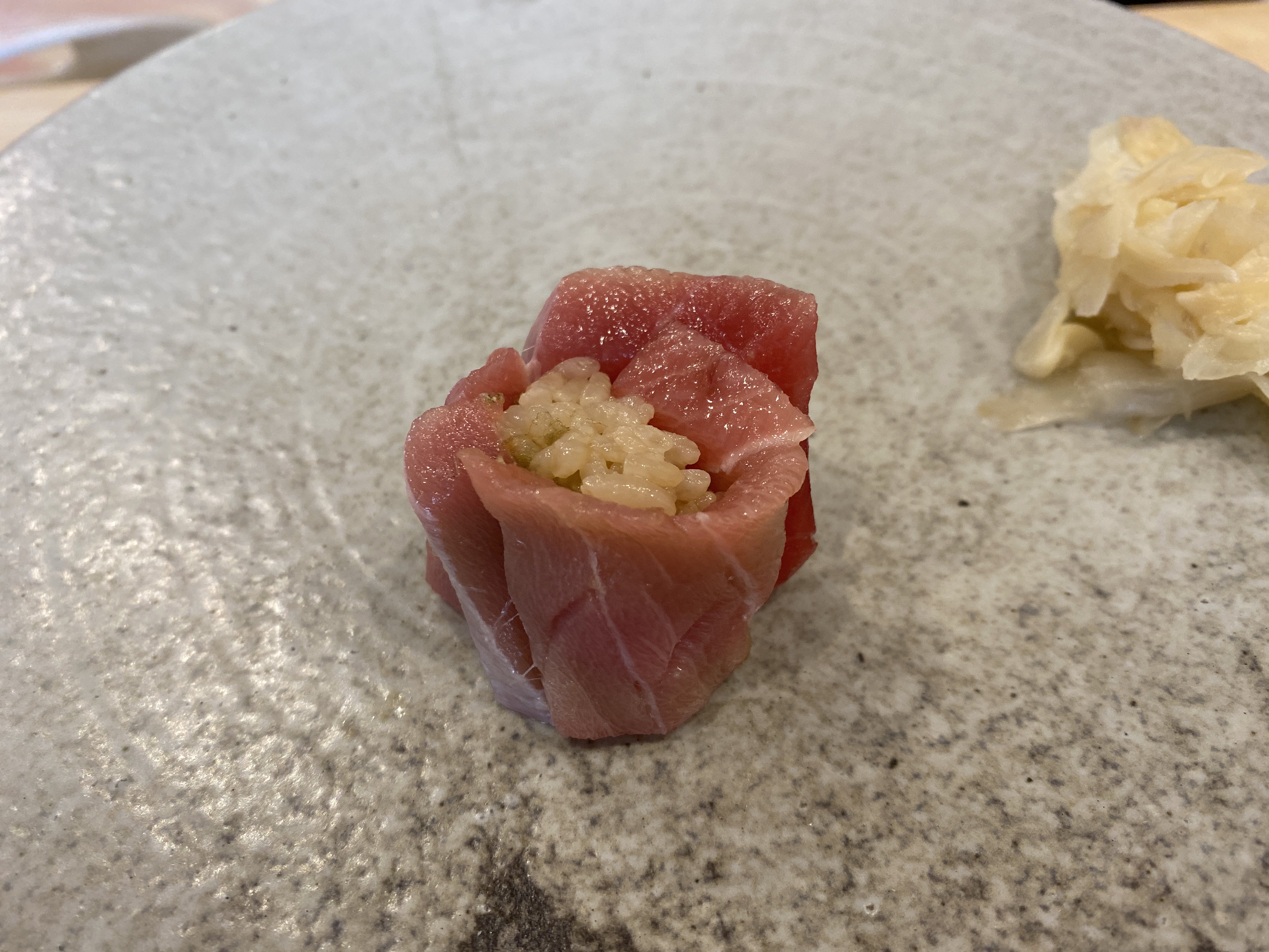 이건 참치 갈빗살을 다져서 만든 초밥이라고 하셨던 것 같다. 참치 맛보다는 뭔가 양념 맛이 더 강했다.