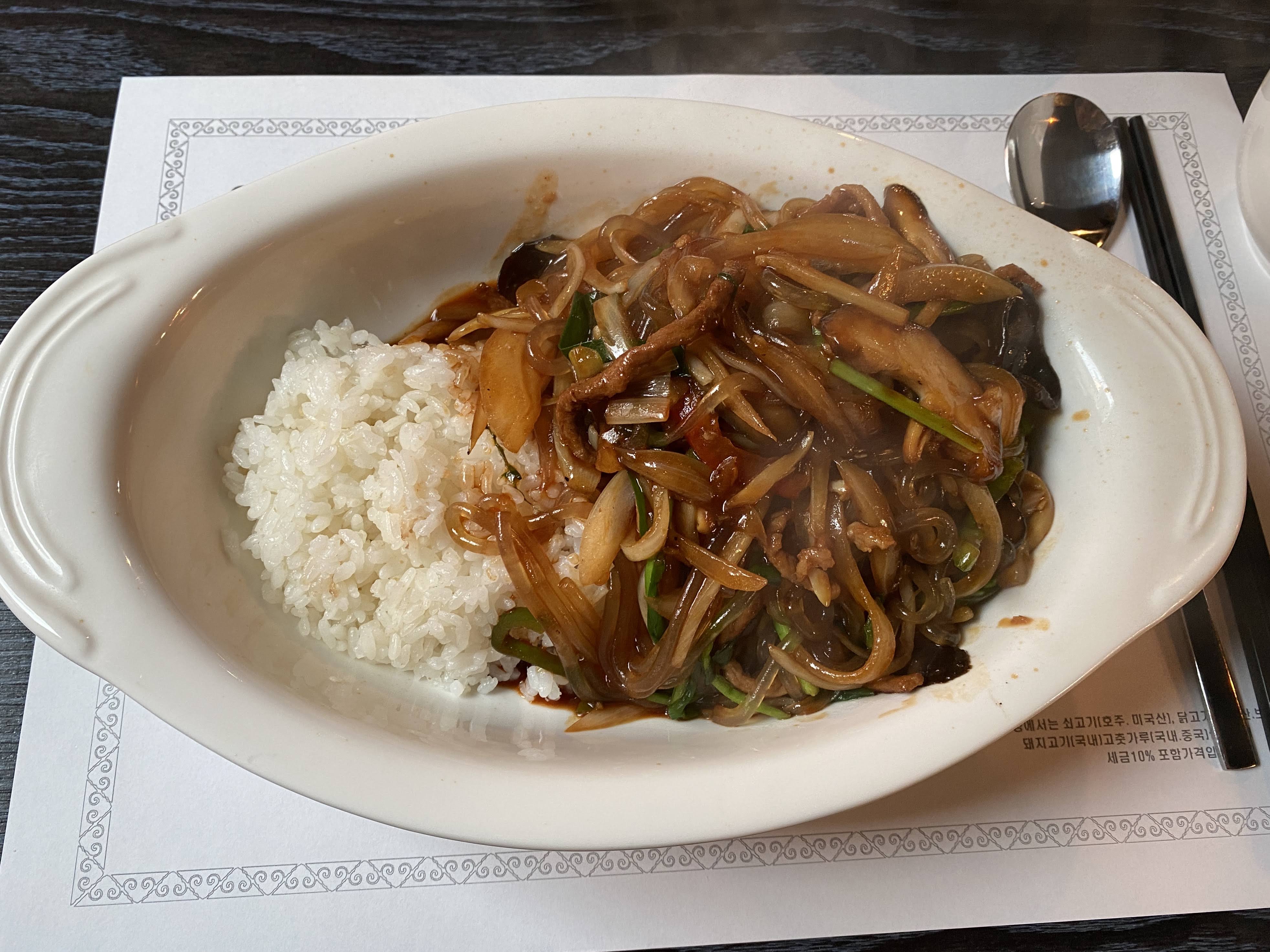 쇠고기잡채밥은 약간 매콤한 맛이 살짝 나는 게 느끼하지 않고 맛있었다. 당면도 탱글하고 점성도 딱 좋아서 밥은 남기고 잡채만 호록호록 다 먹었다. 그렇게 잡채만 건져 먹어도 부담되지 않는 맛이다.