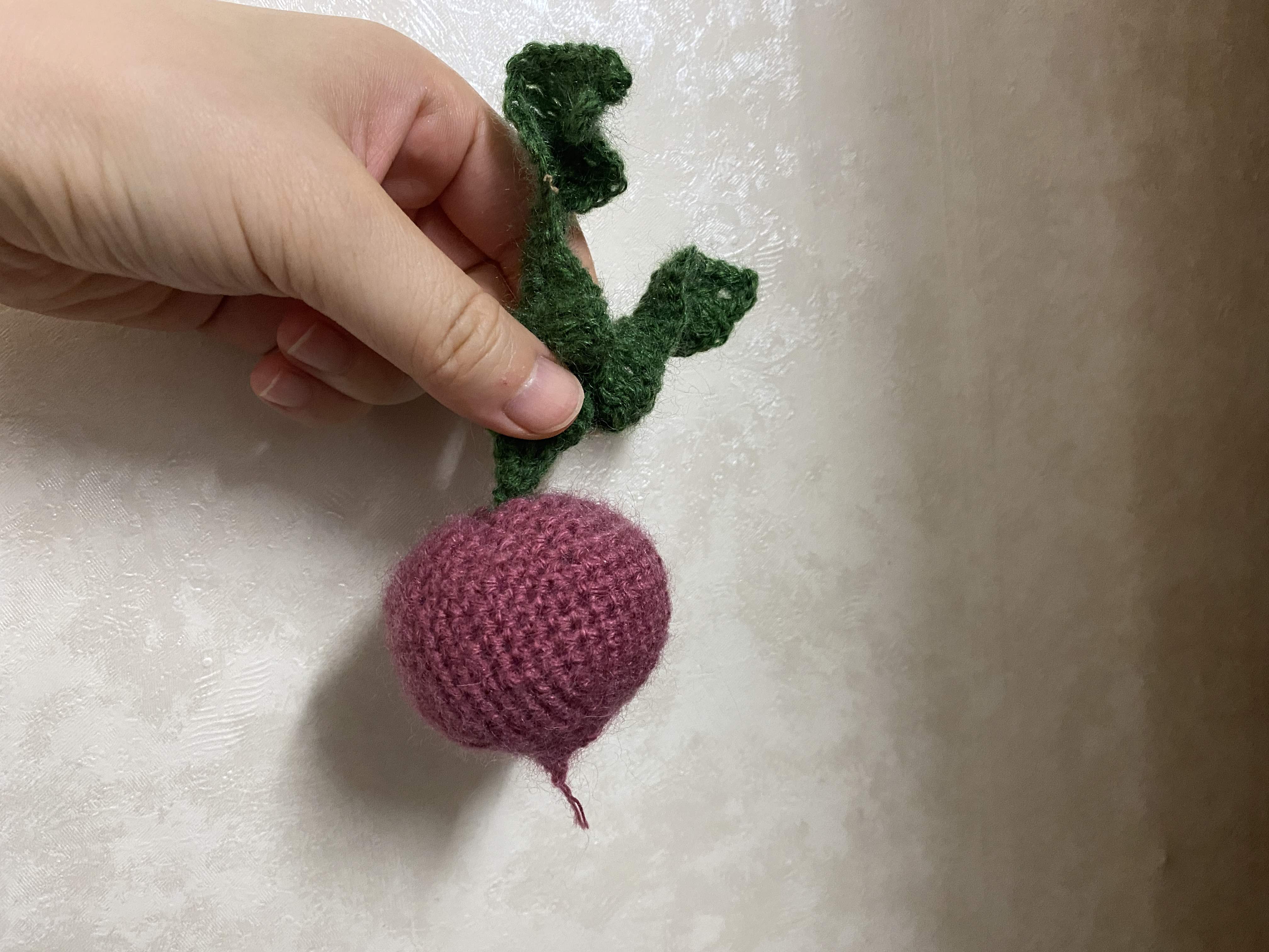 그나마도 잎사귀는 귀찮아서 내 마음대로 뜨고, 비트 모양만 도안대로 떴다. 도안은 짧은뜨기, 코늘이기, 코줄이기만 안다면 뜰 수 있다. 어렵지 않아서 금방 떴다. 솜까지 빵빵하게 채웠더니 꽤 귀여운 비트가 되었다.