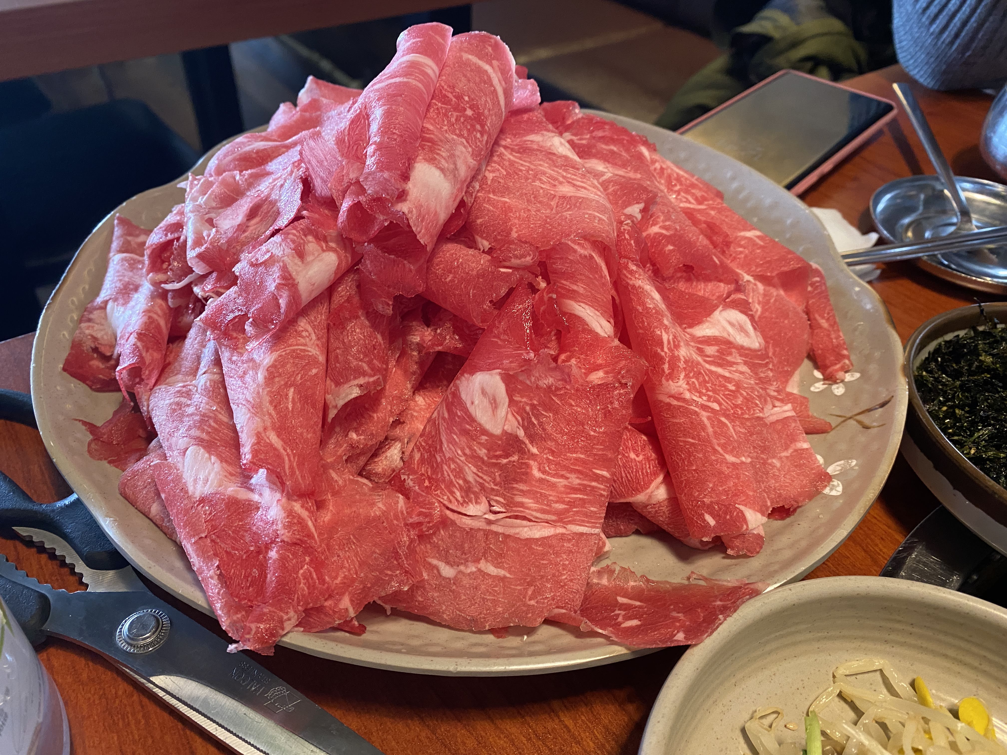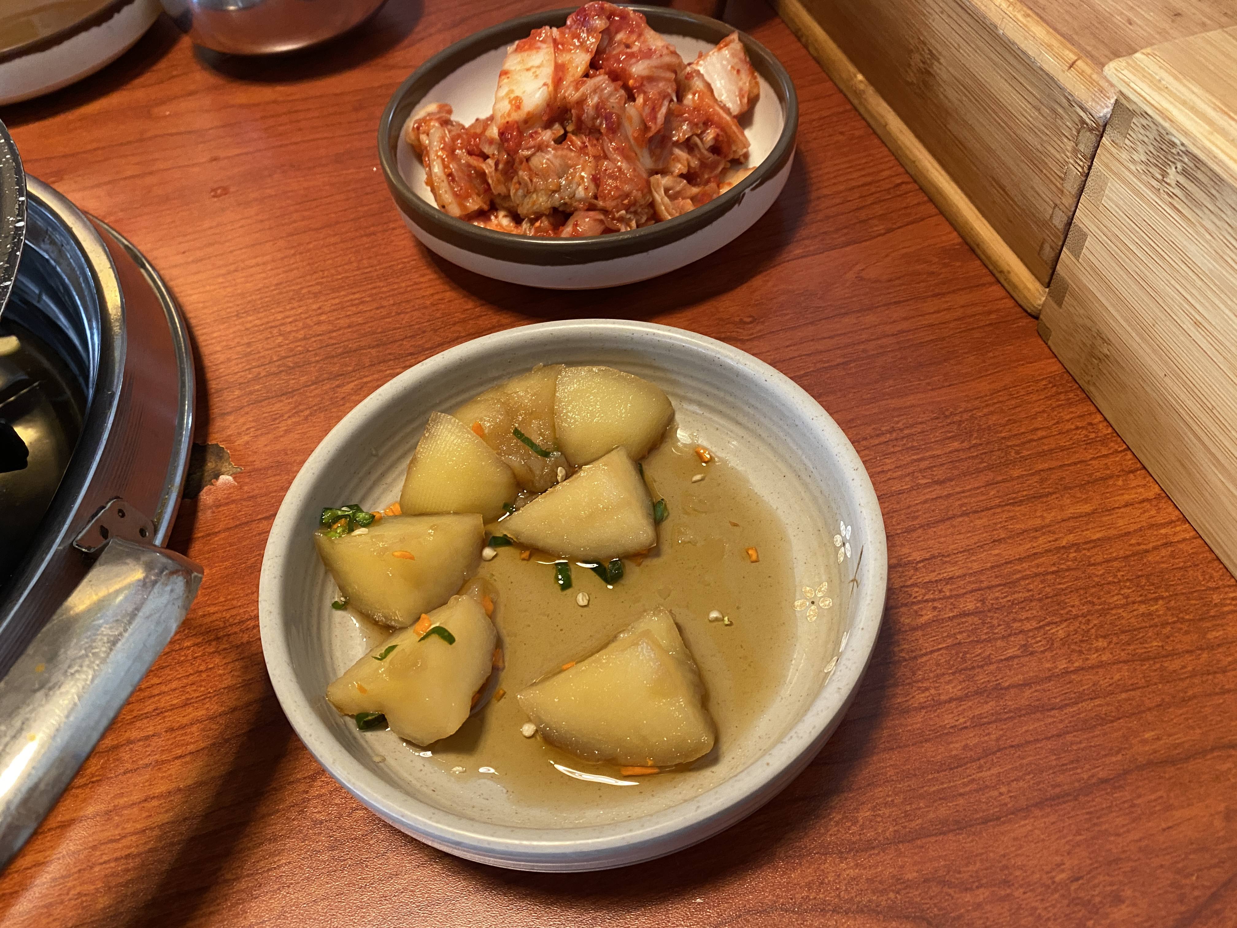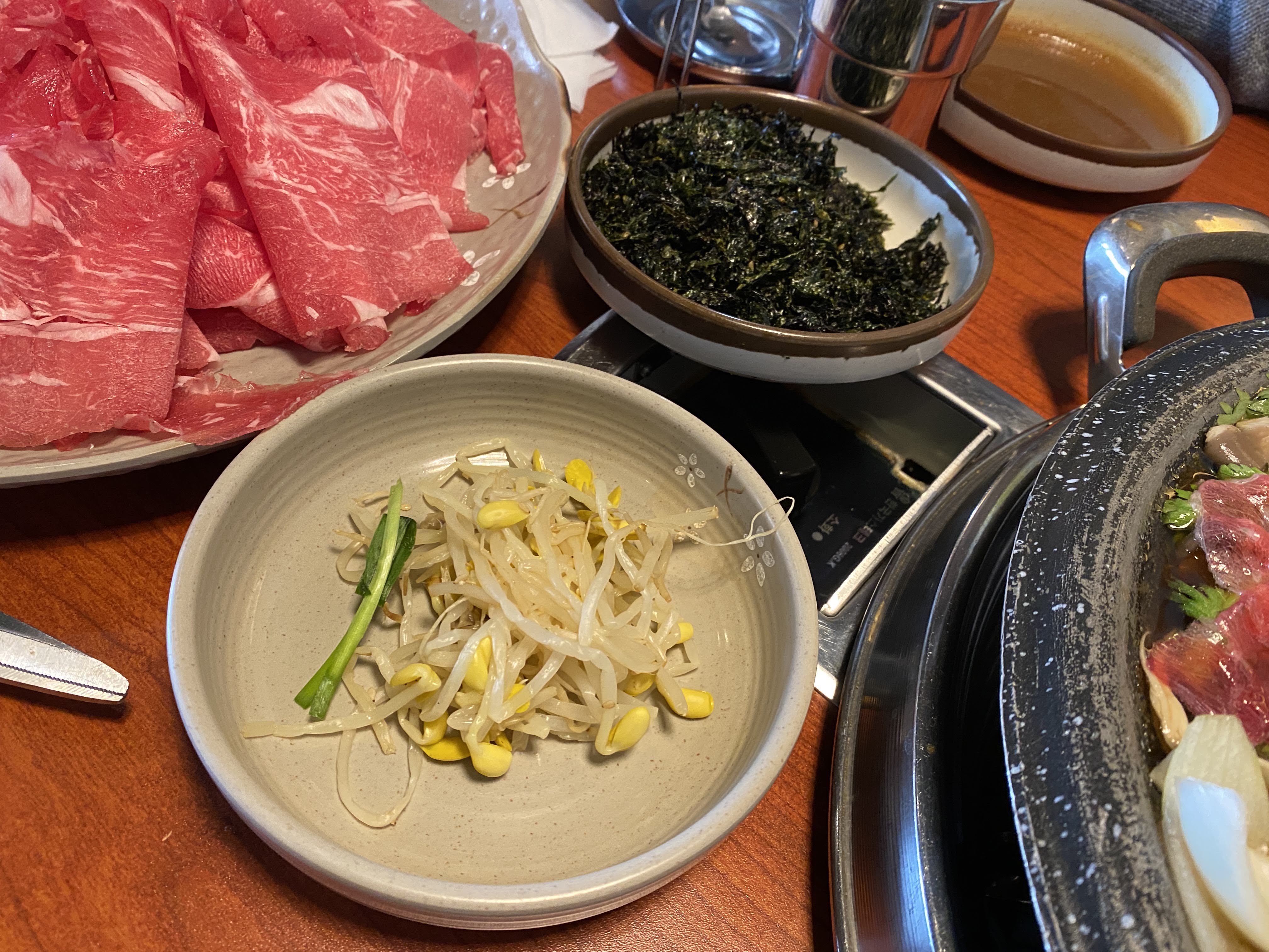 이름만 들으면 불고기 종류일 거 같지만 내가 보기엔 샤브샤브에 좀 더 가까운 느낌이다. 일단 자리에 앉으면 이런 밑반찬을 내준다.