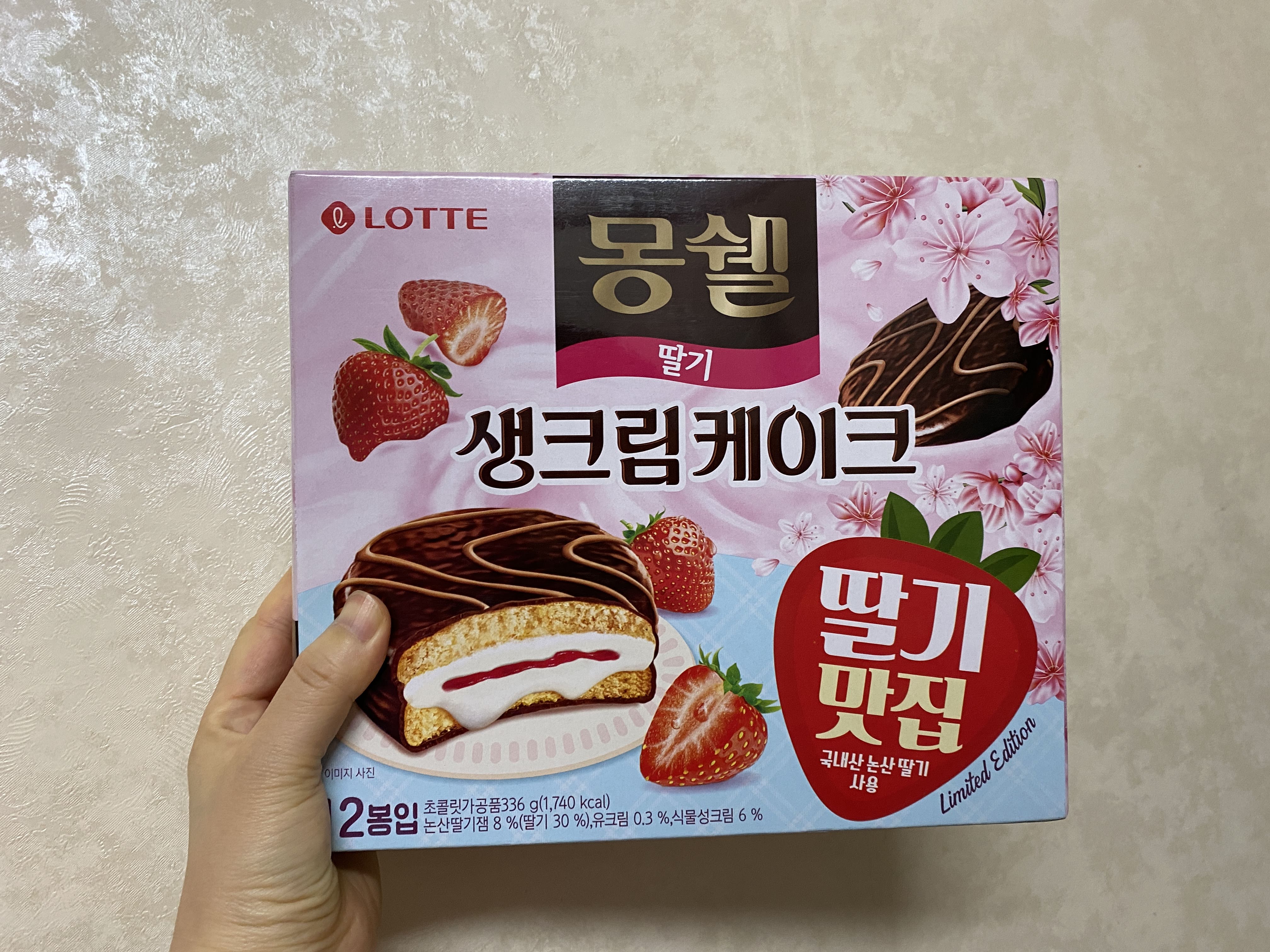 봄은 봄인가 몽쉘도 딸기맛이 나왔다. 몽쉘은 그냥 먹어도 맛있는데 딸기맛까지 나오다니 이건 어떨까? 상자는 분홍빛으로 꾸며서 딸기향이 나는 것 같다. 제품 사진을 보니 가운데 딸기쨈 때문에 돼지바가 떠오른다.