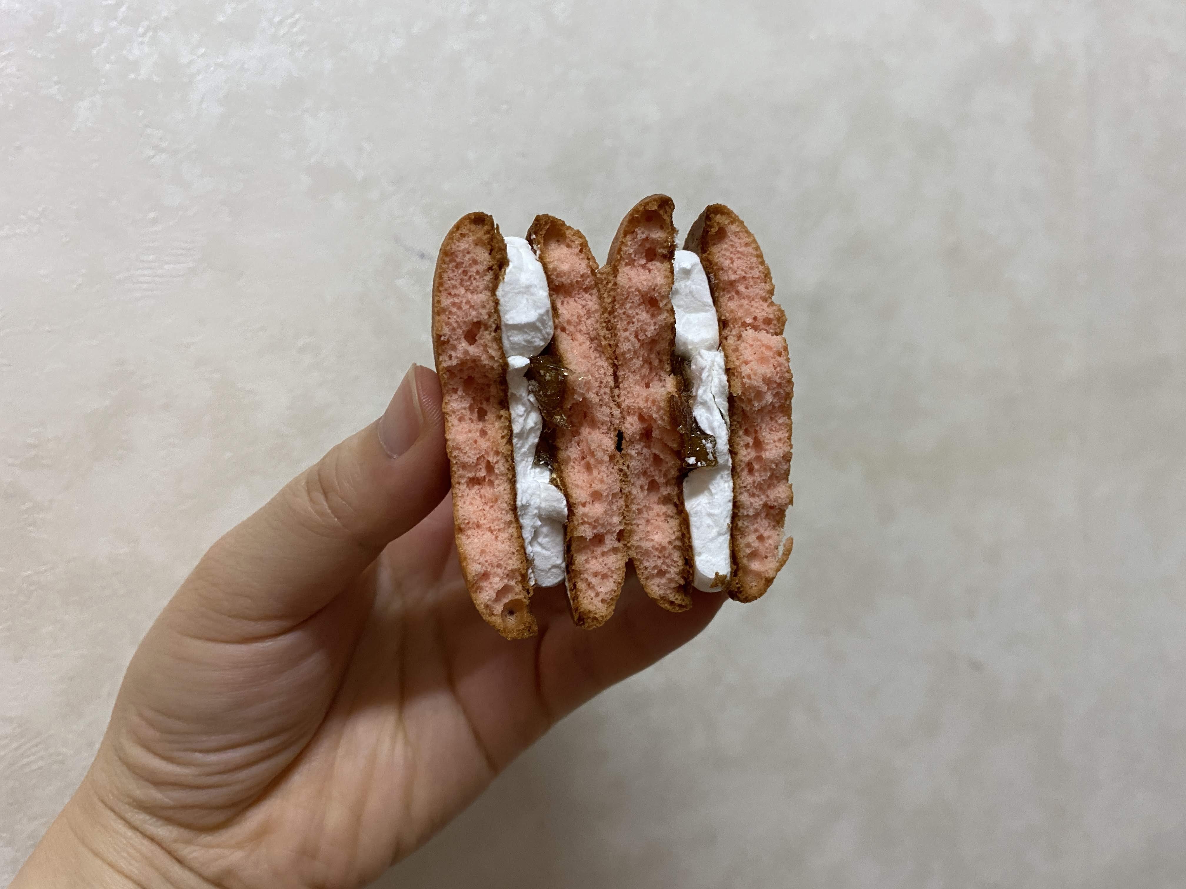 상자에 복숭아 과육이 씹힌다고 써 있긴 했지만, 얼마나 씹히겠어 하는 마음가짐으로 입에 넣었는데 생각보다 복숭아가 꽤 씹힌다. 복숭아 요거트에 든 복숭아 과육을 생각하면 가장 비슷하겠다. 복숭아 향도 제법 나고, 안에 크림이랑 과육이 상큼하니 먹을 만했다.