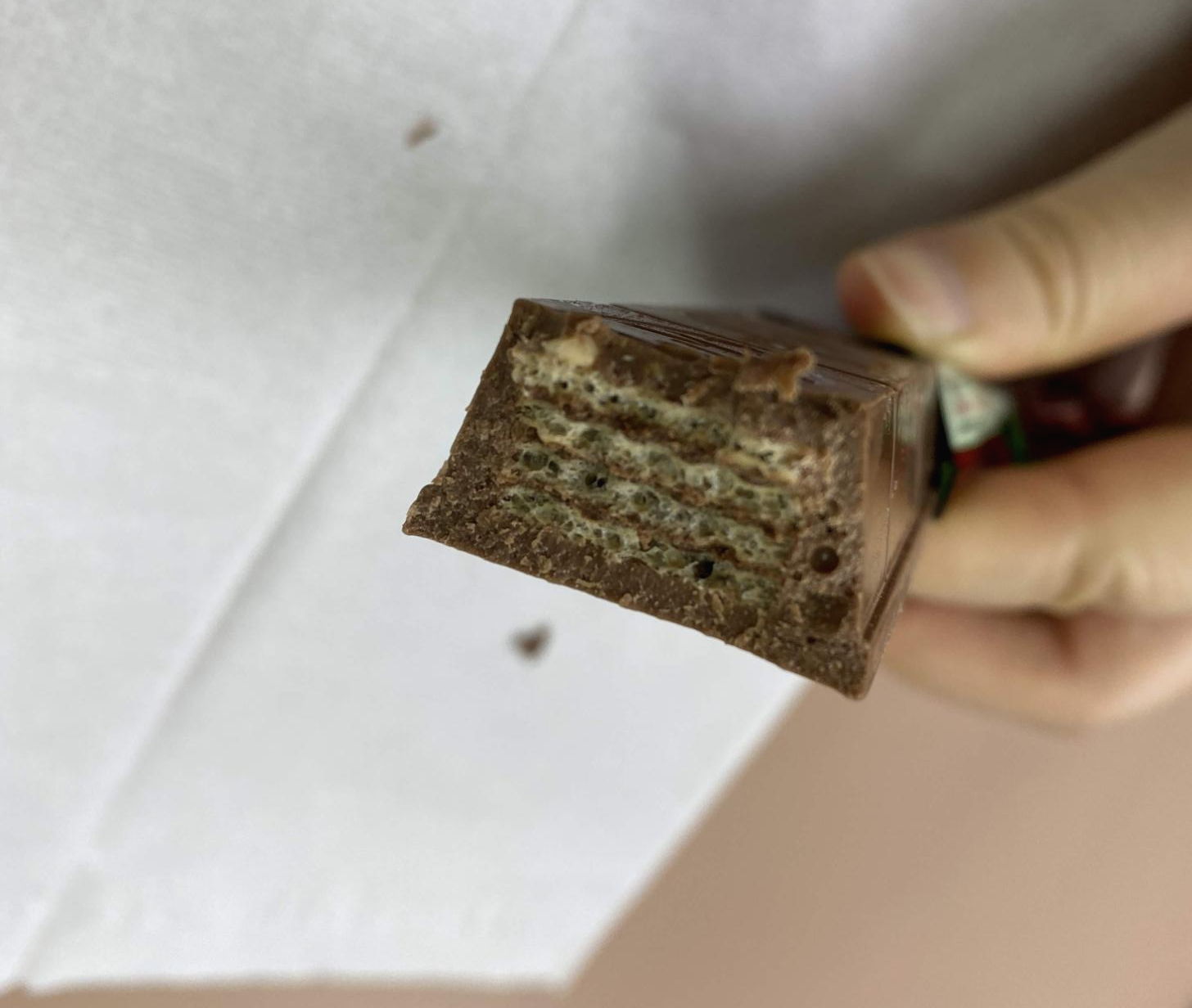 반으로 뚝 잘라서 단면을 보자. 단면은 킷캣 오리지널을 확대한 것 같다.