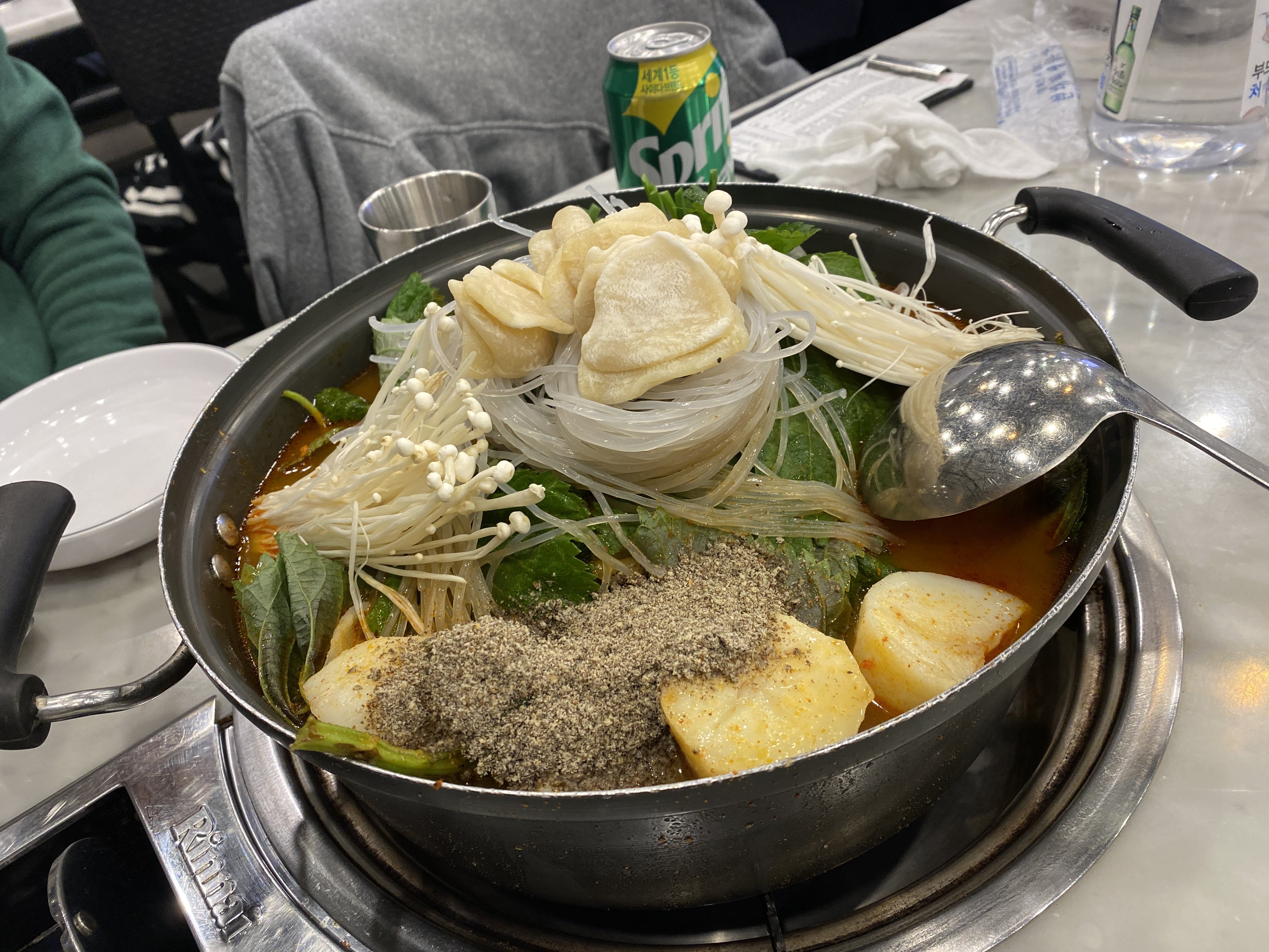 감자탕이 뼈도 크고 살도 많이 붙어 있어서 발라 먹는 게 너무 재밌었다. 우거지에도 싸 먹고 김치랑도 먹고 그냥도 먹고, 먹다가 수제비나 당면도 중간중간 즐기며 아주 즐거운 시간을 보냈다.