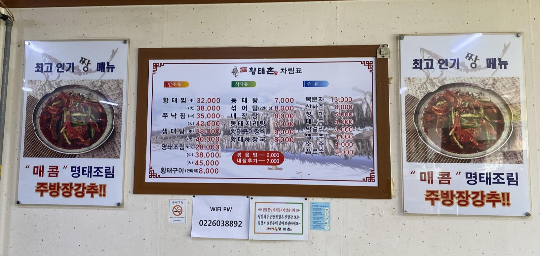 메뉴는 가게 이름답게 황태와 생태 명태를 이용한 음식을 판다.