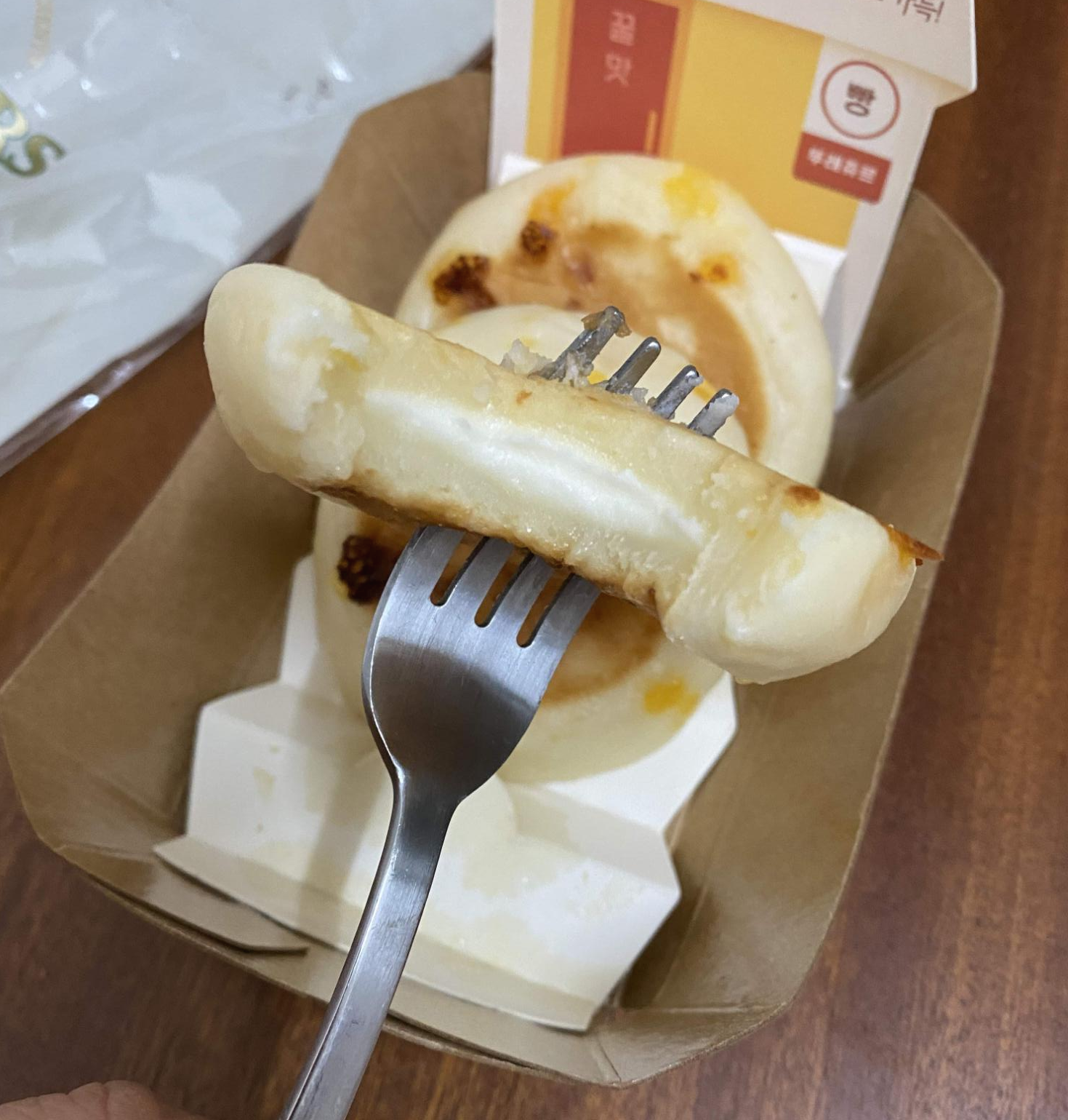 안에 크림치즈의 짭쪼름하고 부드러운 맛과 떡의 쫄깃함, 그 사이사이에 배어 나오는 체다 치즈 맛이 진짜 일품이다. 겉은 달콤하고 끈적한 무언가가 뿌려져 있는데 정말 단짠의 완성이다. 정말 맛나다.