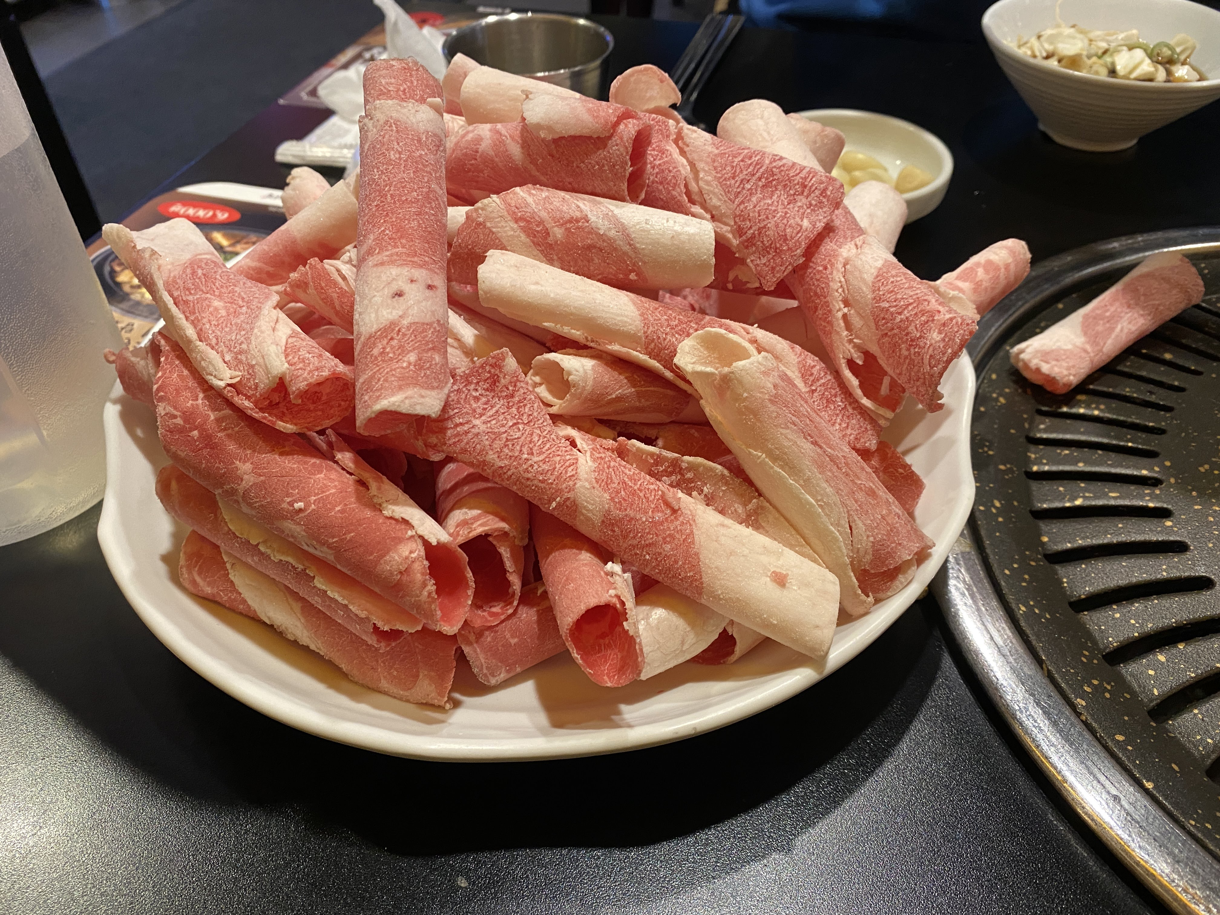 차돌박이 등장. 차돌박이는 불에 올리자마자 익기 시작해서 좋다. 고기를 굽는 시간이 짧으니 흐름이 끊길 일도 거의 없다.