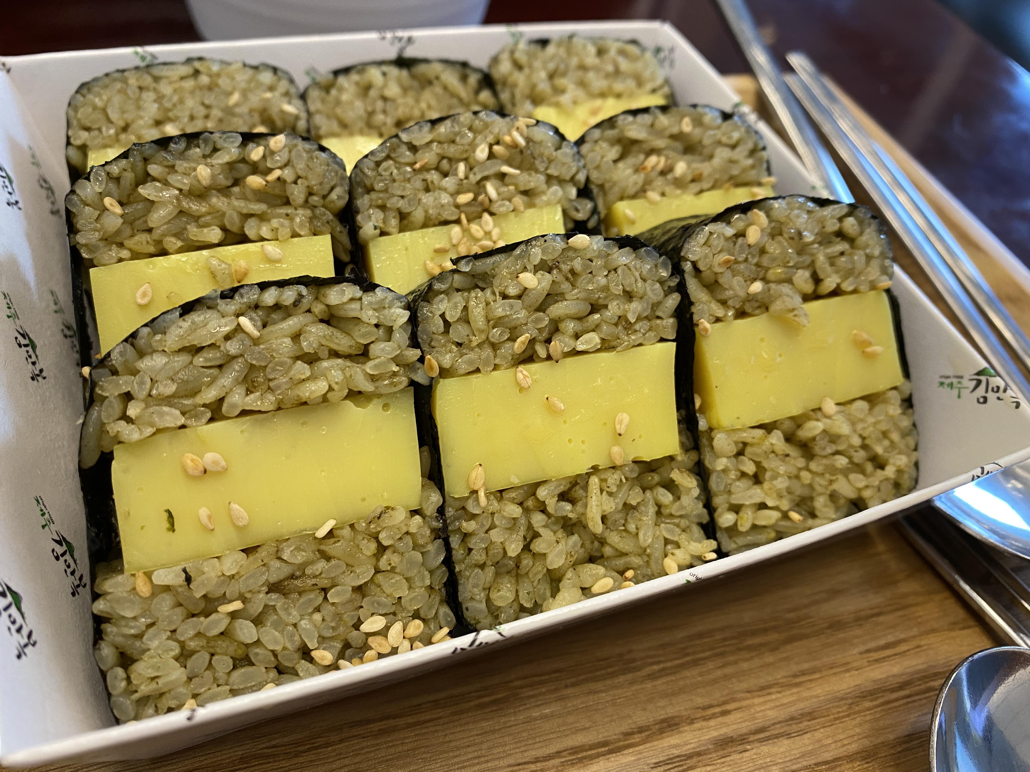 이것이 전복 김밥으로 이름 난 만복이네 김밥.