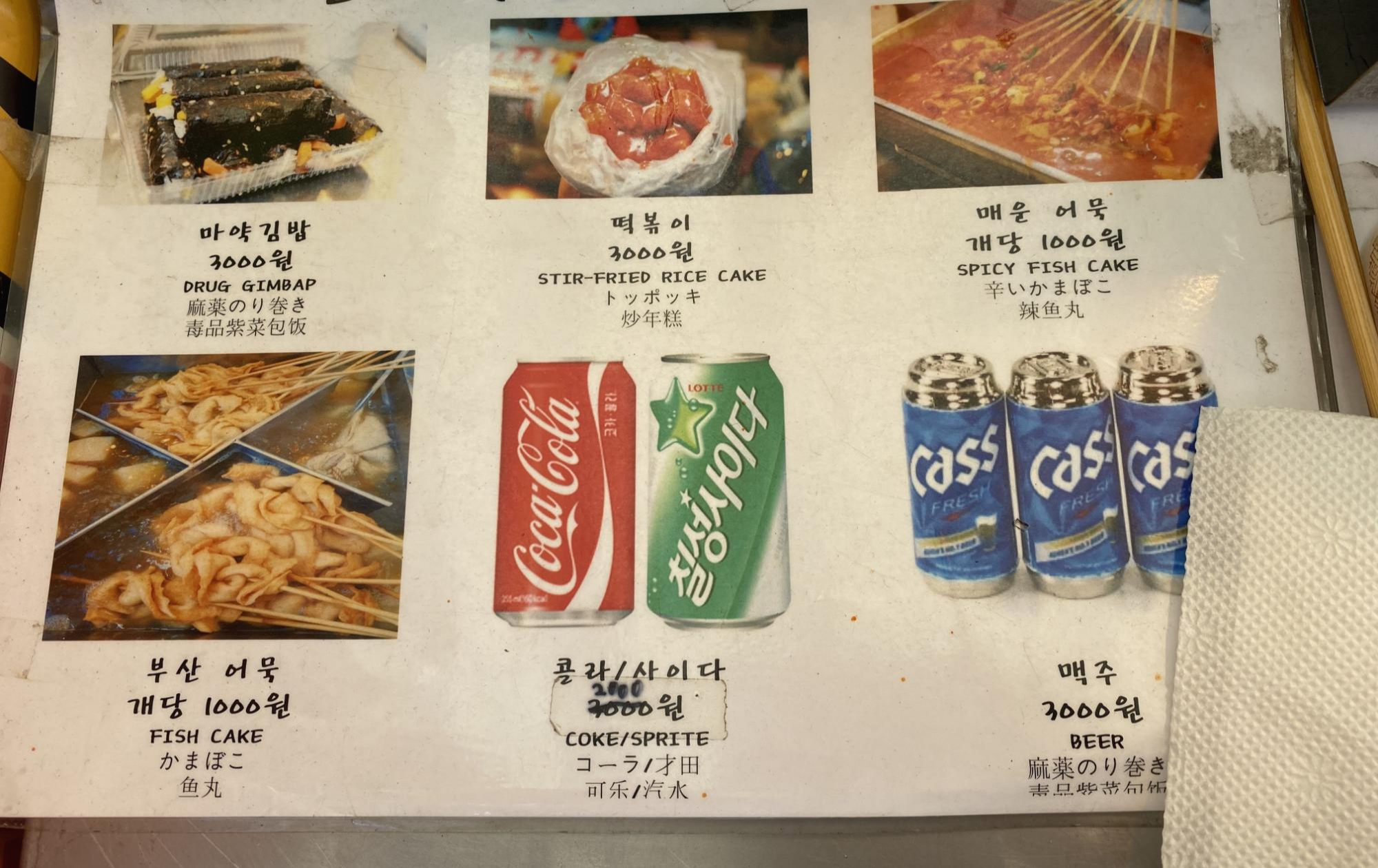진짜 맛나게 먹고 마약김밥 두 팩을 포장했다. 계산은 메뉴판에 써 있는 계좌로 입금했다. 진짜 맛있었다.