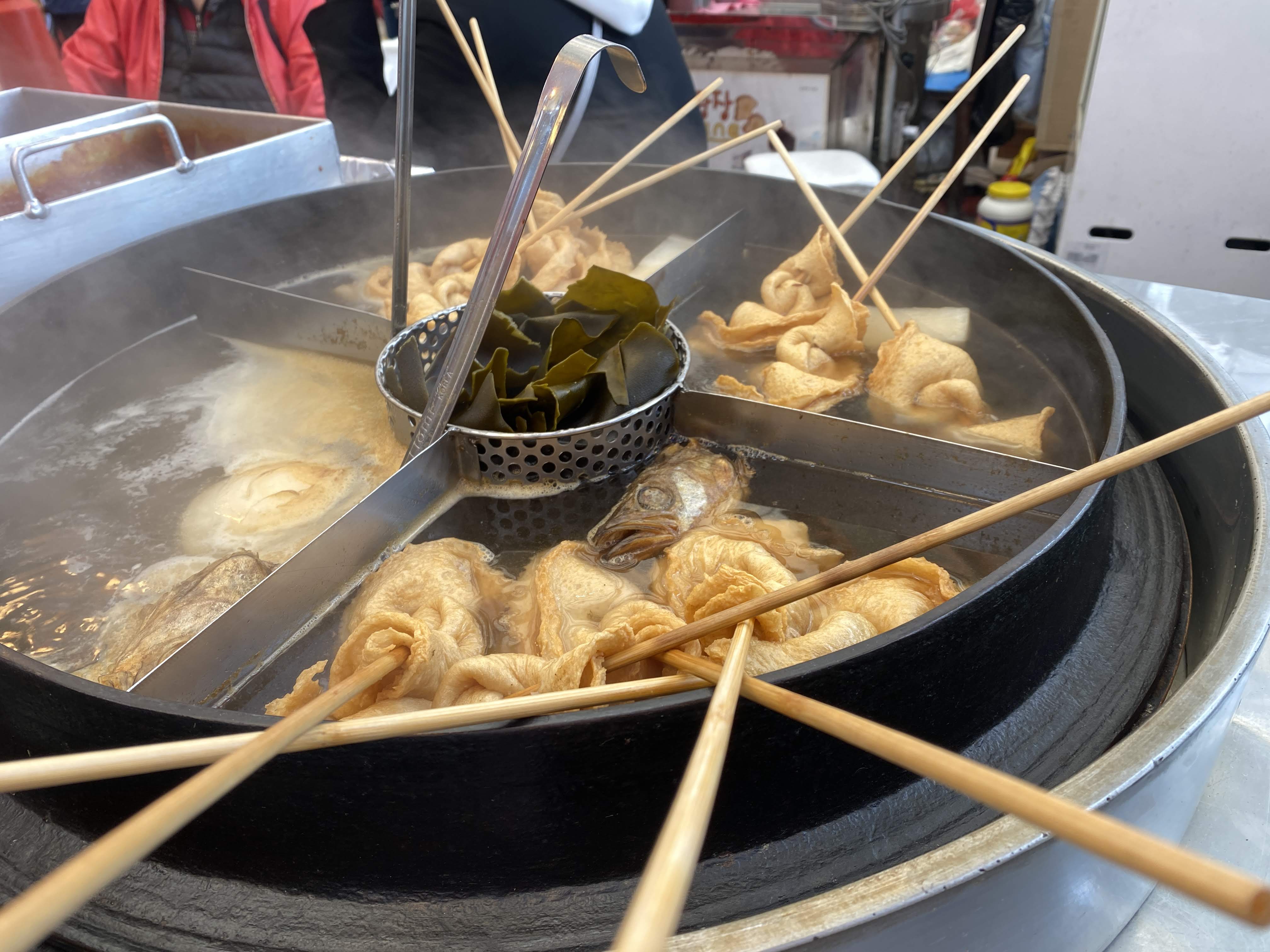 부지런히 마약김밥을 말고 계셨고, 손님도 있었다. 자리에 앉았는데 어묵 냄새가 진짜 너무 좋았다. 어묵은 이렇게 두 종류가 있었는데 난 매운 걸 잘 못 먹으니 기본 어묵을 먹었다. 어묵이 푹 익었는지 부드럽고 쫄깃했다. 국물은 개운하고 깔끔!