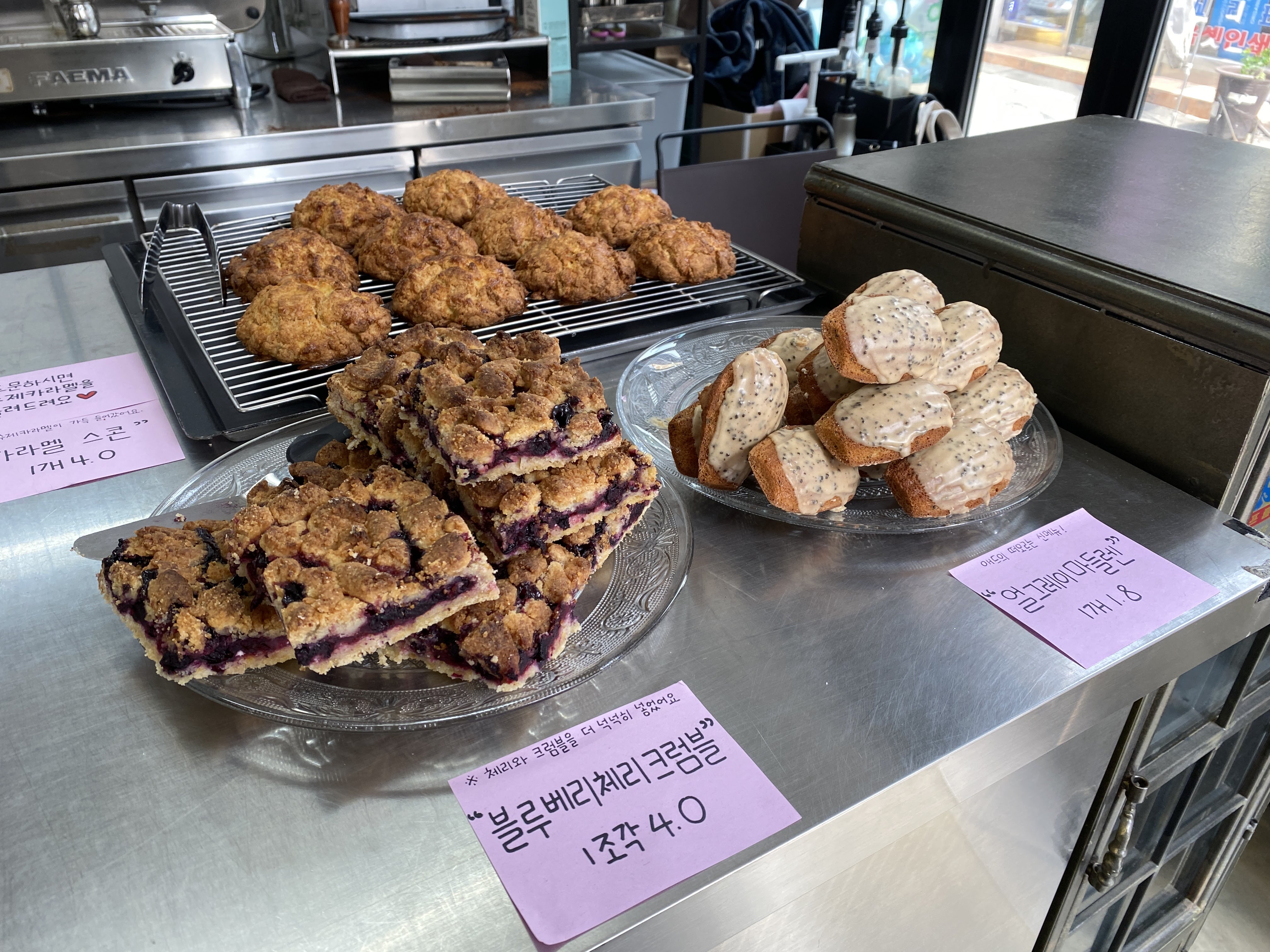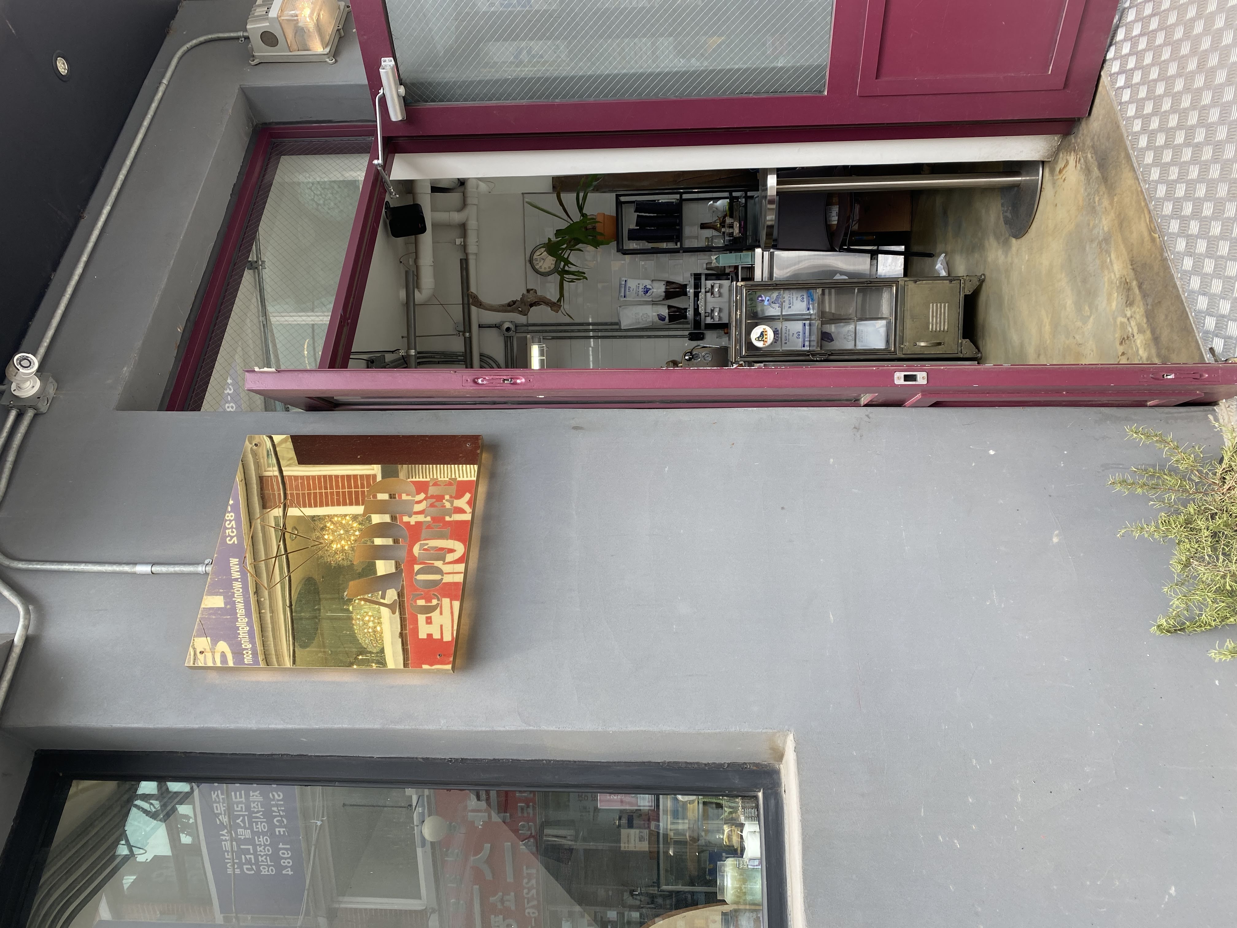 옥상에 루프탑도 있는 걸로 알고 있는데 계단이 무서워서 못 올라갔다. 창가 자리에 앉았다. 자리 잡고 있자니 음료가 나와서 다시 계단을 달달 떨며 내려가 음료를 받아왔다.