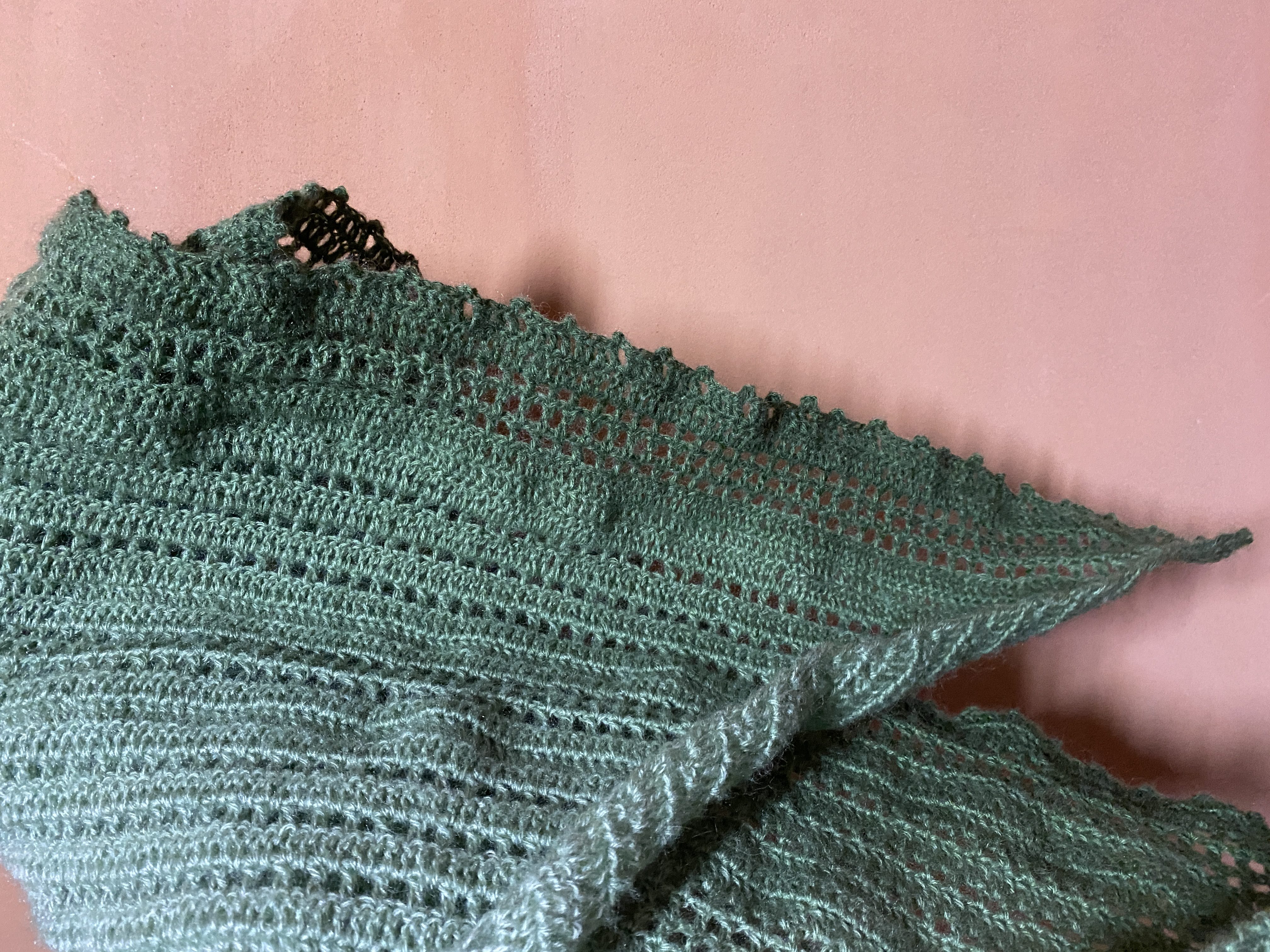 드디어 사놓은 앙고라 골드 옴브레 바틱을 다 썼다! 남아있던 초록색 볼(7297)로 숄을 마저 떴다.