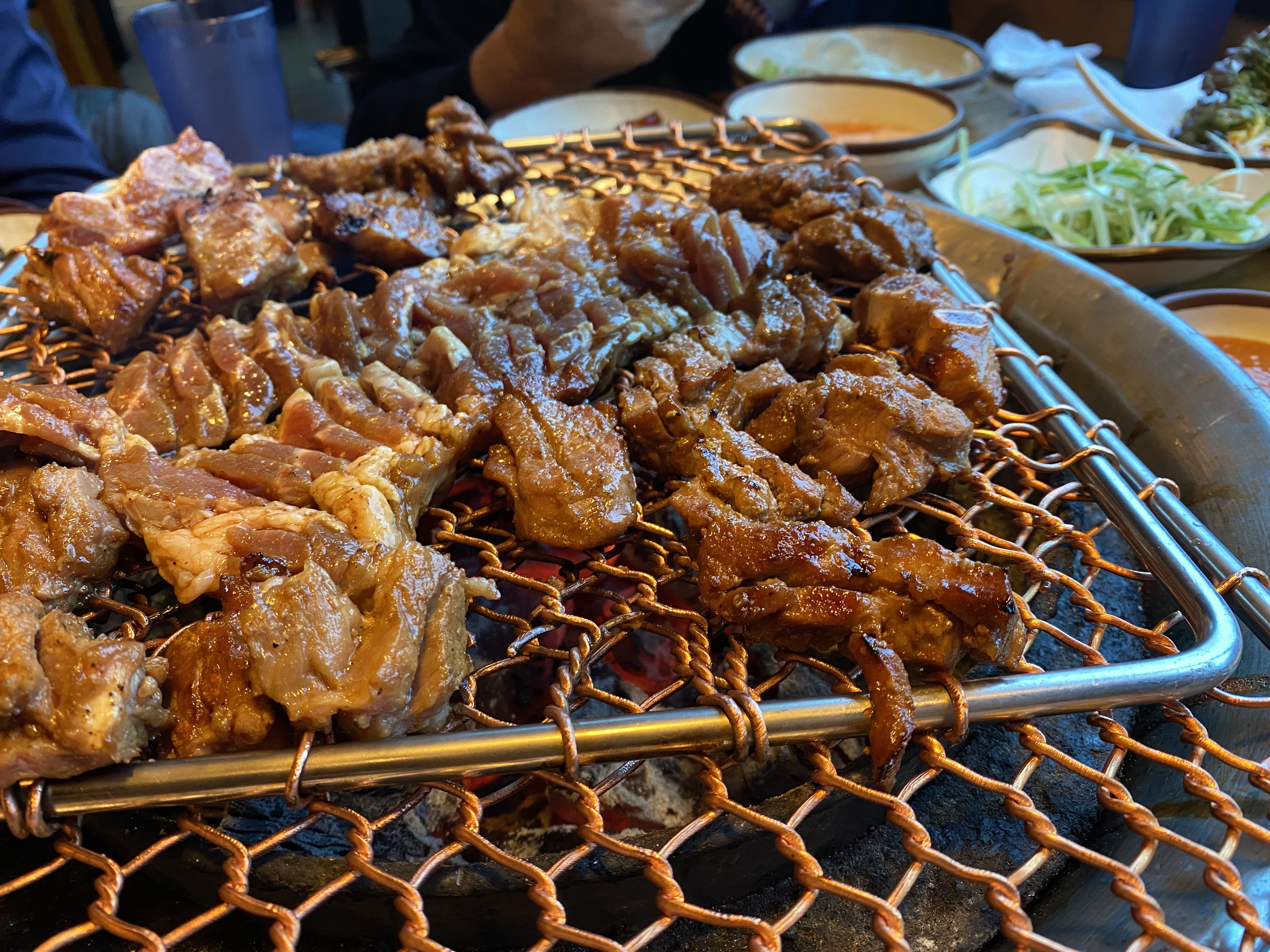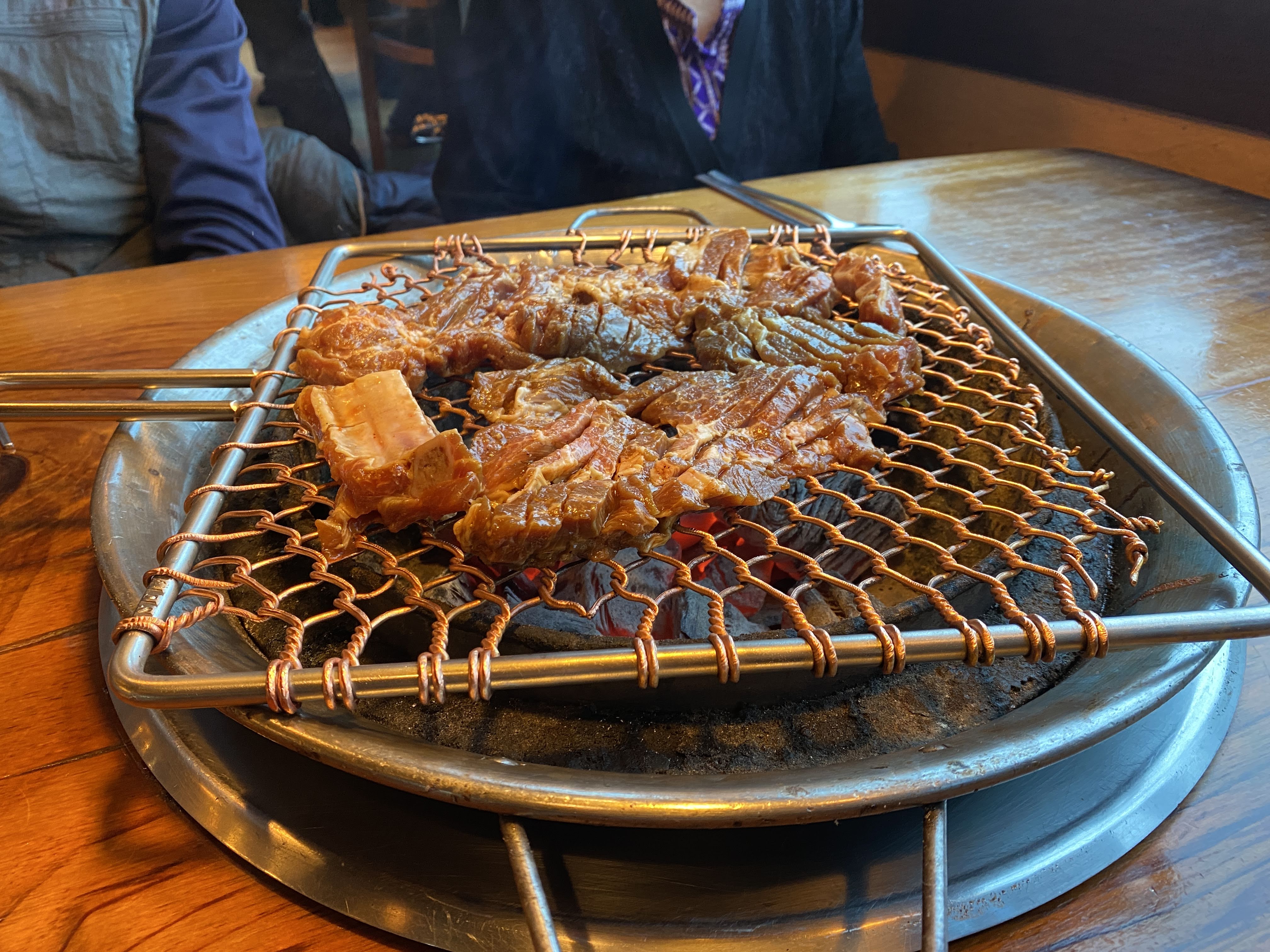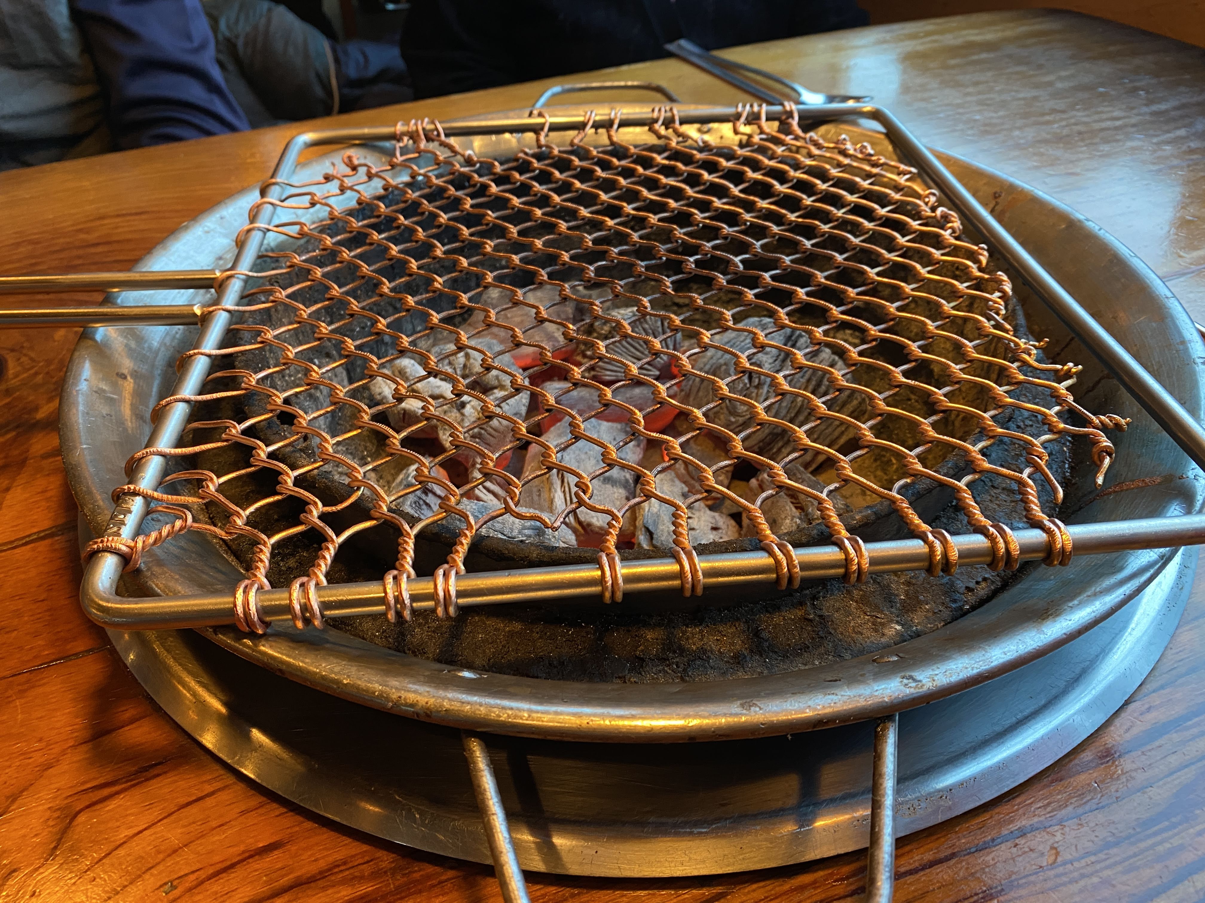 숯이 깔리고 불판이 등장.
