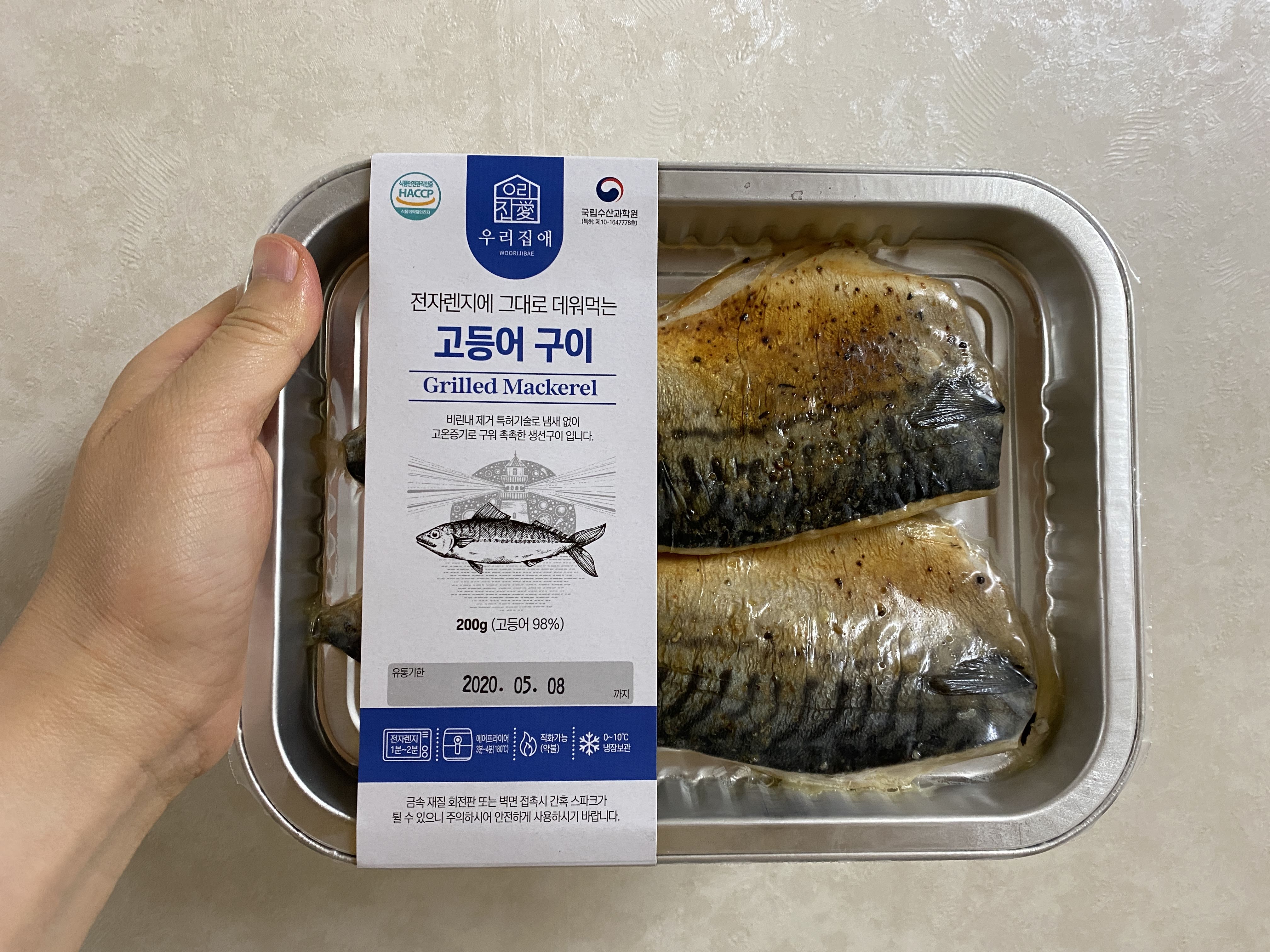 요즘 전자렌지에 데워서 먹을 수 있는 생선 구이가 유행한다길래 마트에서 샀다! 이름은 우리집애 고등어 구이. 고등어 말고 삼치도 있었는데 일단 가장 기본 생선(?)인 고등어를 먹어 보려고 고등어를 샀다.