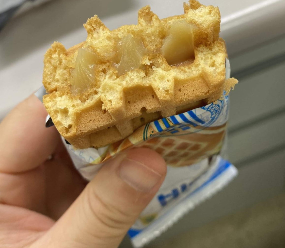 안에 든 크림은 바닐라향이 진했다. 재질이 약간 질척한 느낌을 준다. 와플은 식감이 퍼석해서 기대에 못 미쳤다. 좀 쫄깃하거나 바삭한 편이 더 맛있지 않았을까 싶었다. 길거리에서 파는 사과잼과 크림을 발라주는 와플 맛을 기대했었기 때문에 조금 실망스러웠다.