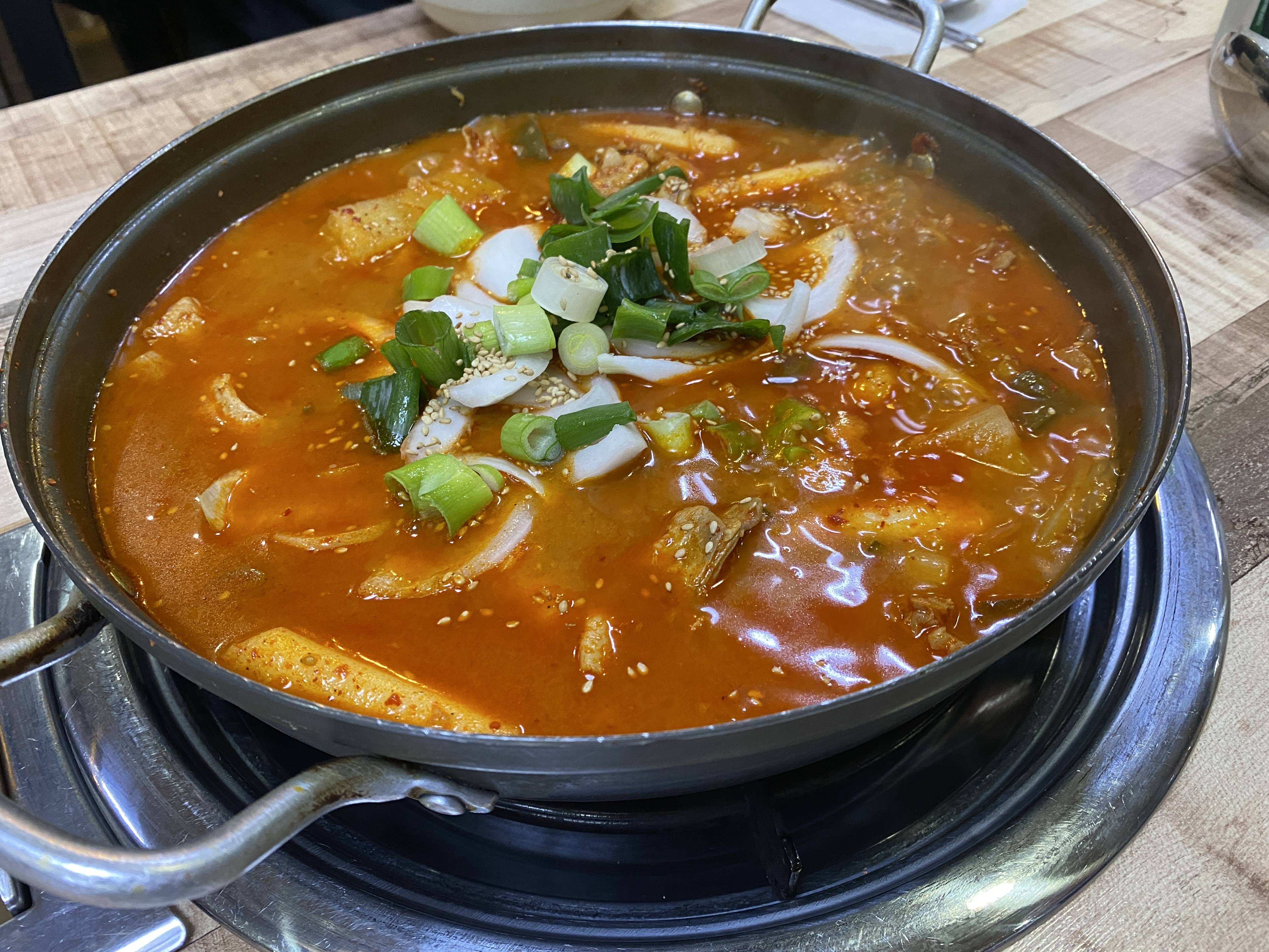다섯 명이서 닭볶음탕 중자랑 참치 김치찌개 중자를 시켰다. 메뉴판에도 쓰여 있지만, 공깃밥이 별도라서 찌개를 시키고 공깃밥도 꼭 추가를 해야 한다.