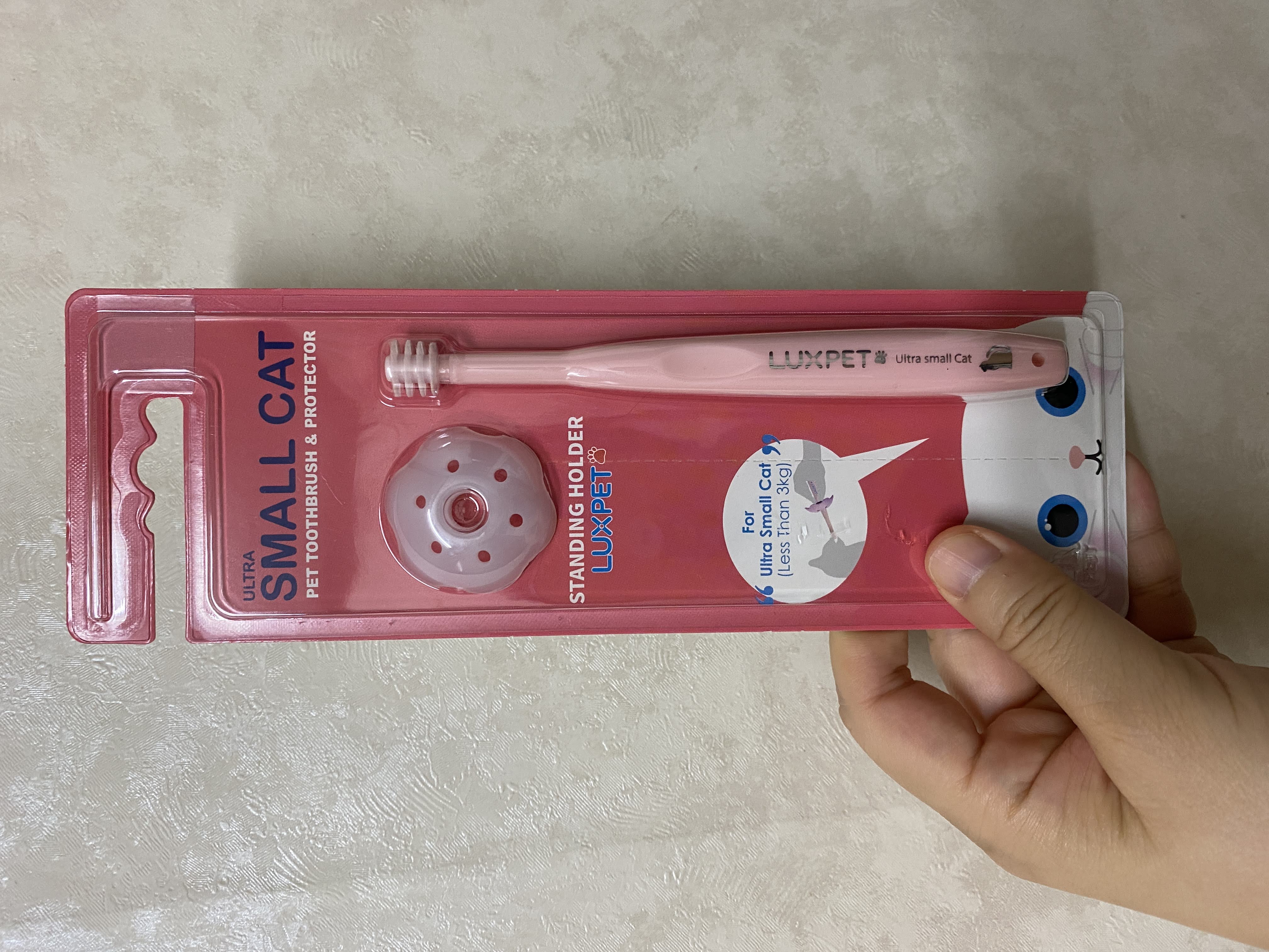 마지막으로 구매한 것은 럭스펫 칫솔이다. 이건 작은 고양이를 위해 나온 건데 칫솔모가 둥글어서 치약을 쭉 짜서 대충 입에 물려주면 깍깍 깨물면서 적당히 양치가 되는 효과가 있었다.
