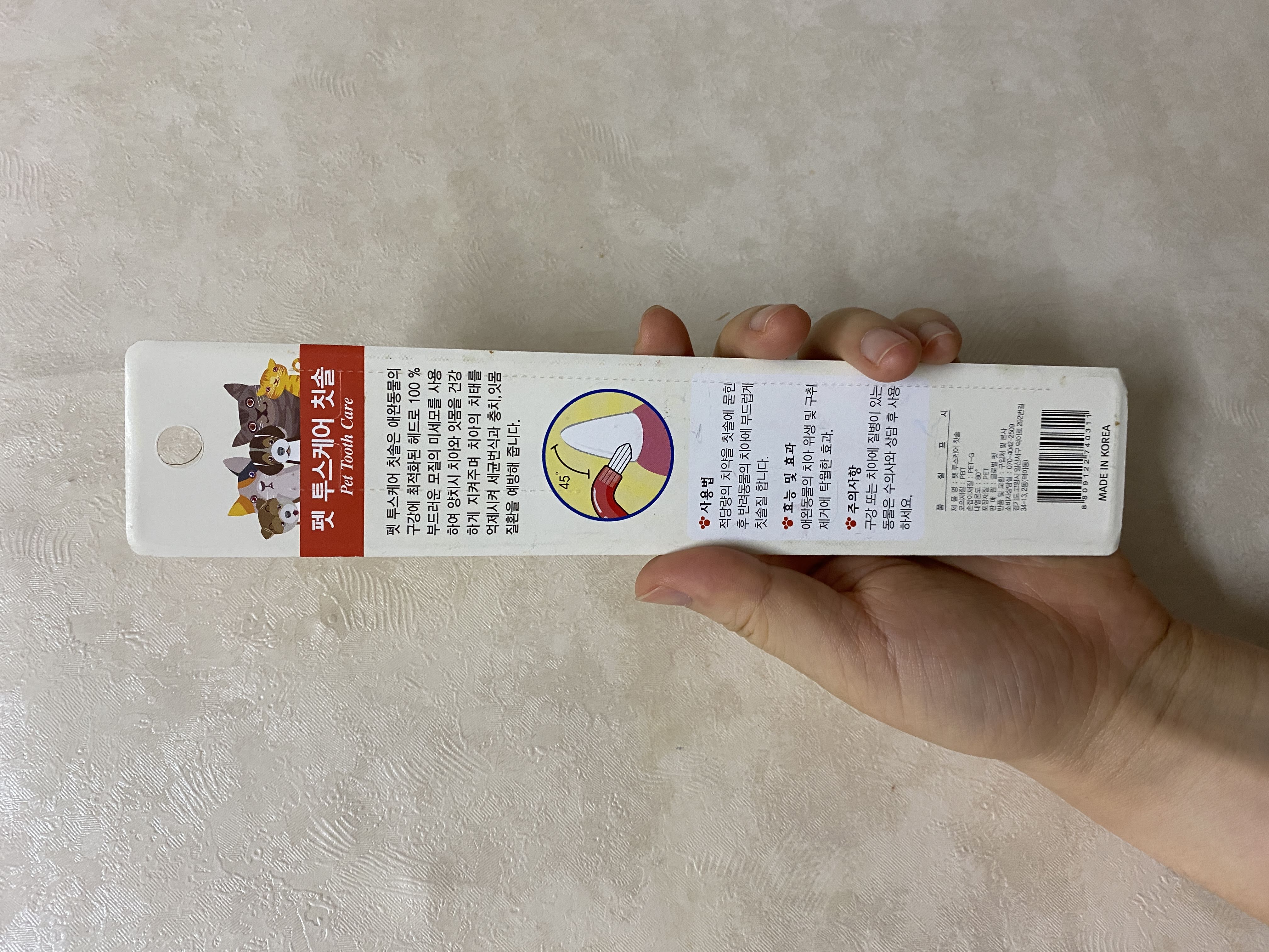 좀 더 칫솔 머리가 작은 칫솔을 찾다가 이런 칫솔을 샀다. 이름은 펫 투스케어 칫솔.